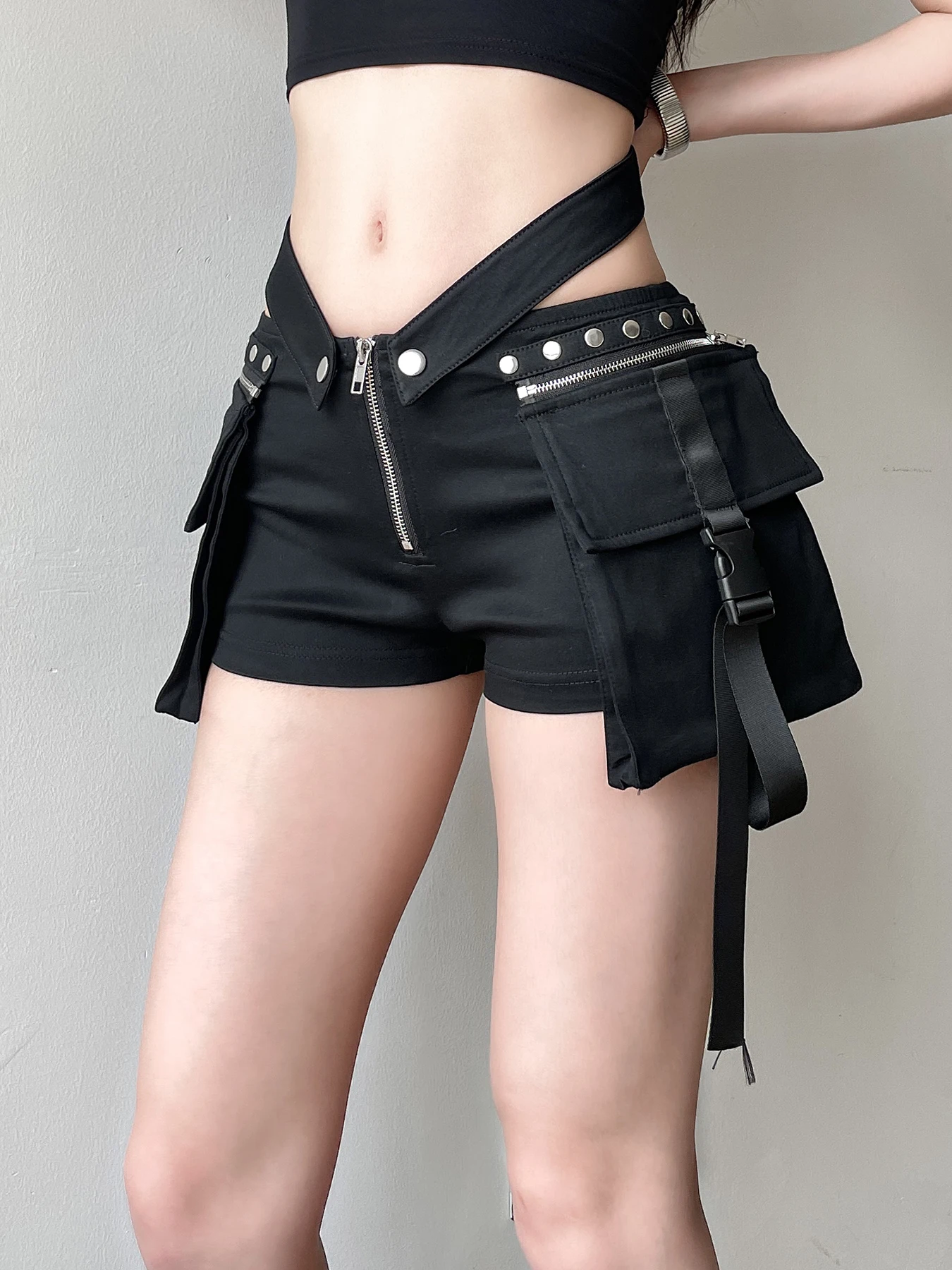 Rockmore Gothic Black V-Waisted Pocket Shorts Coquette Dark Style Low Waist Shorts Y2K Aesthetic Mini Short Pants Women Clothing
