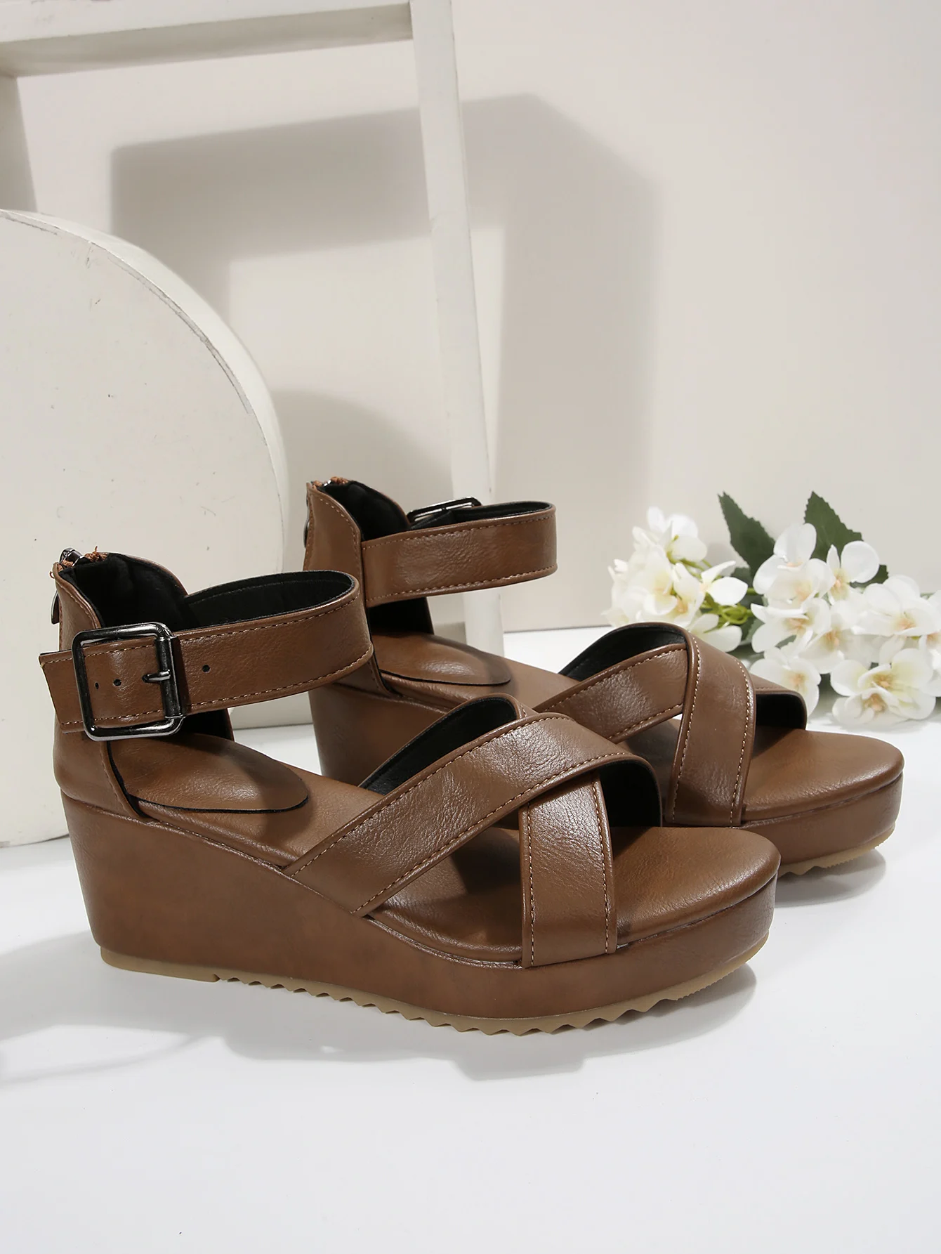 Roman Style Thick Heel Sandals Women's Summer Fashion Large Size Belt Buckle High Heels Platform Slippers PU Leather TPR