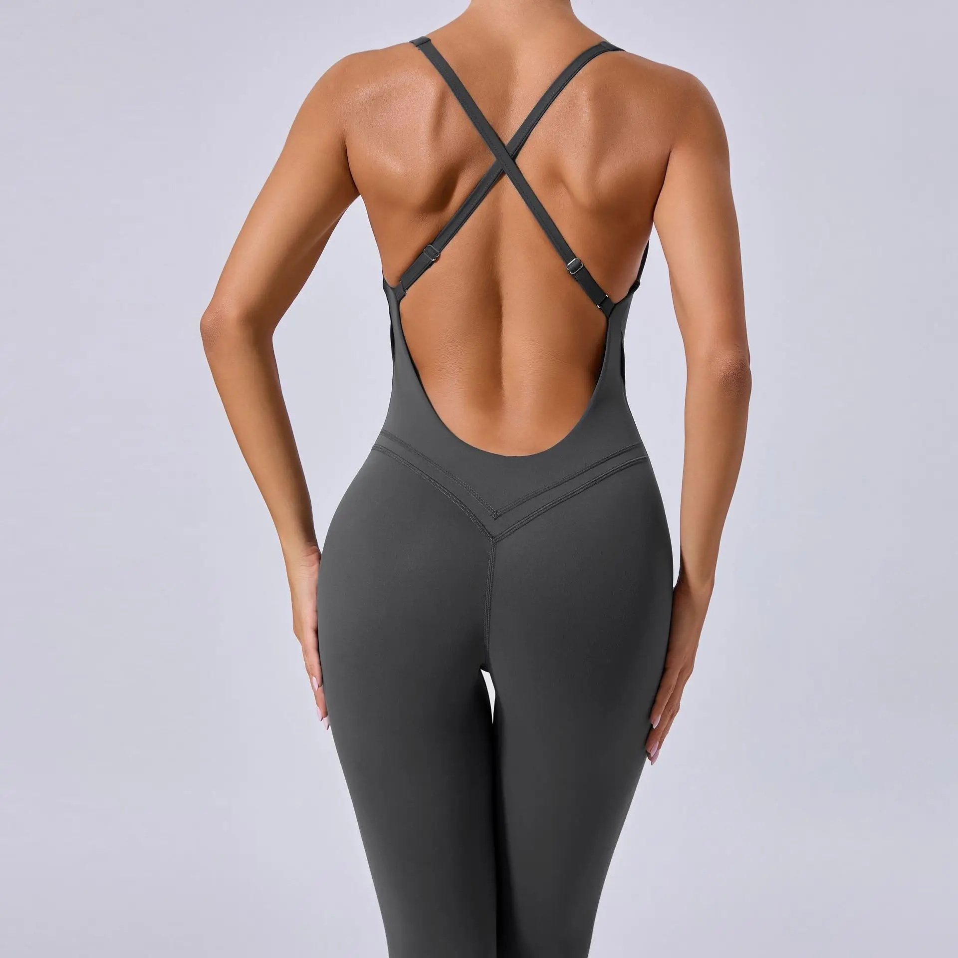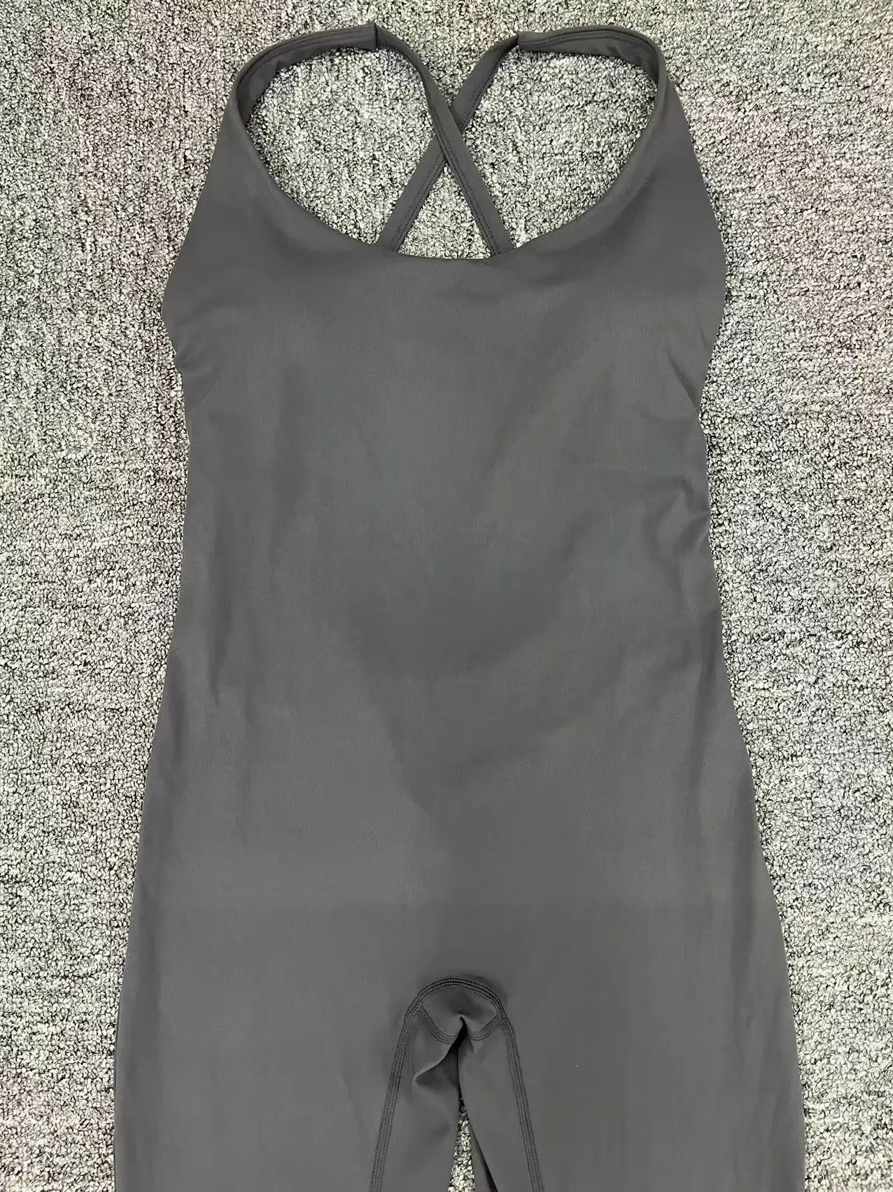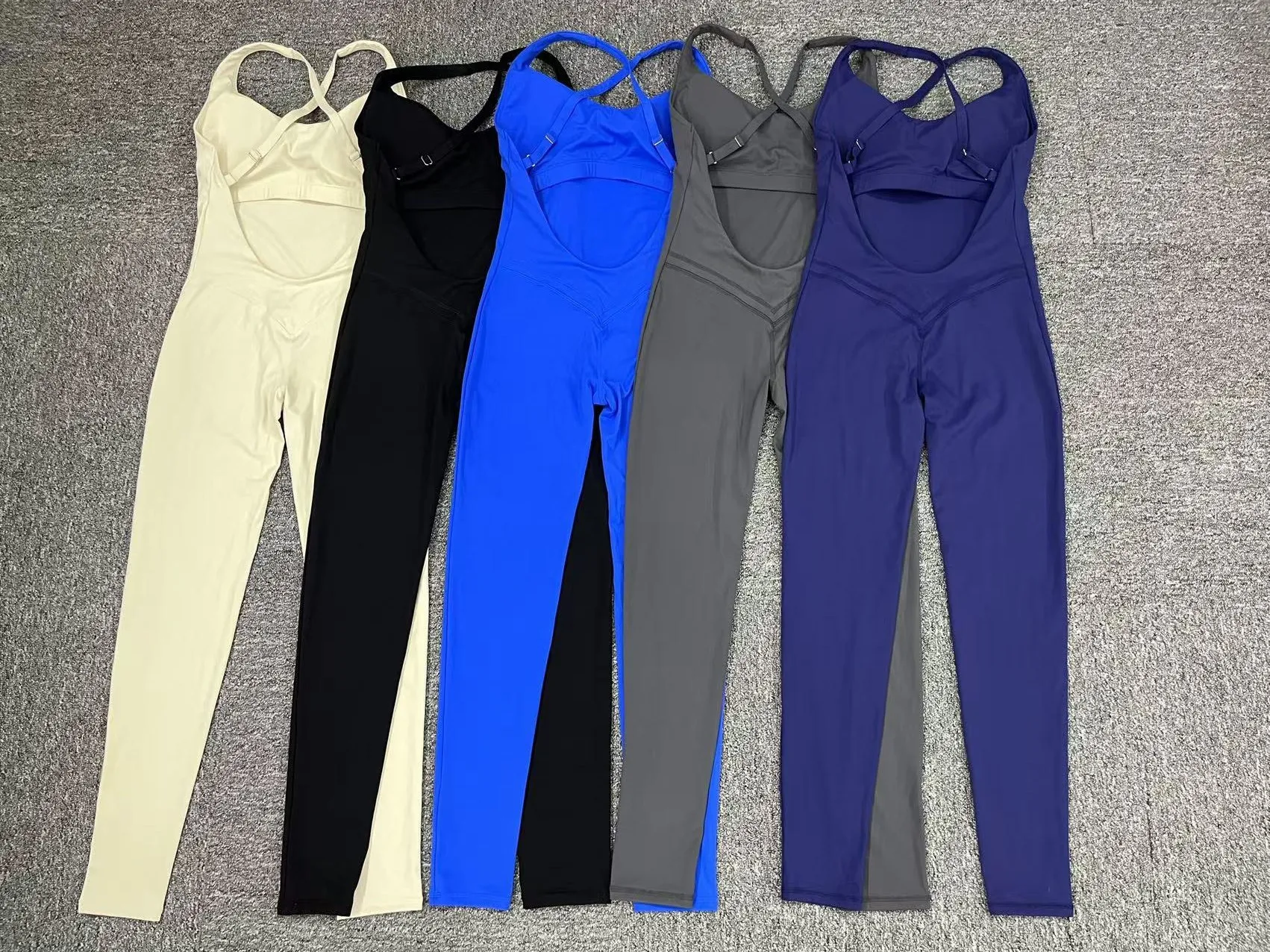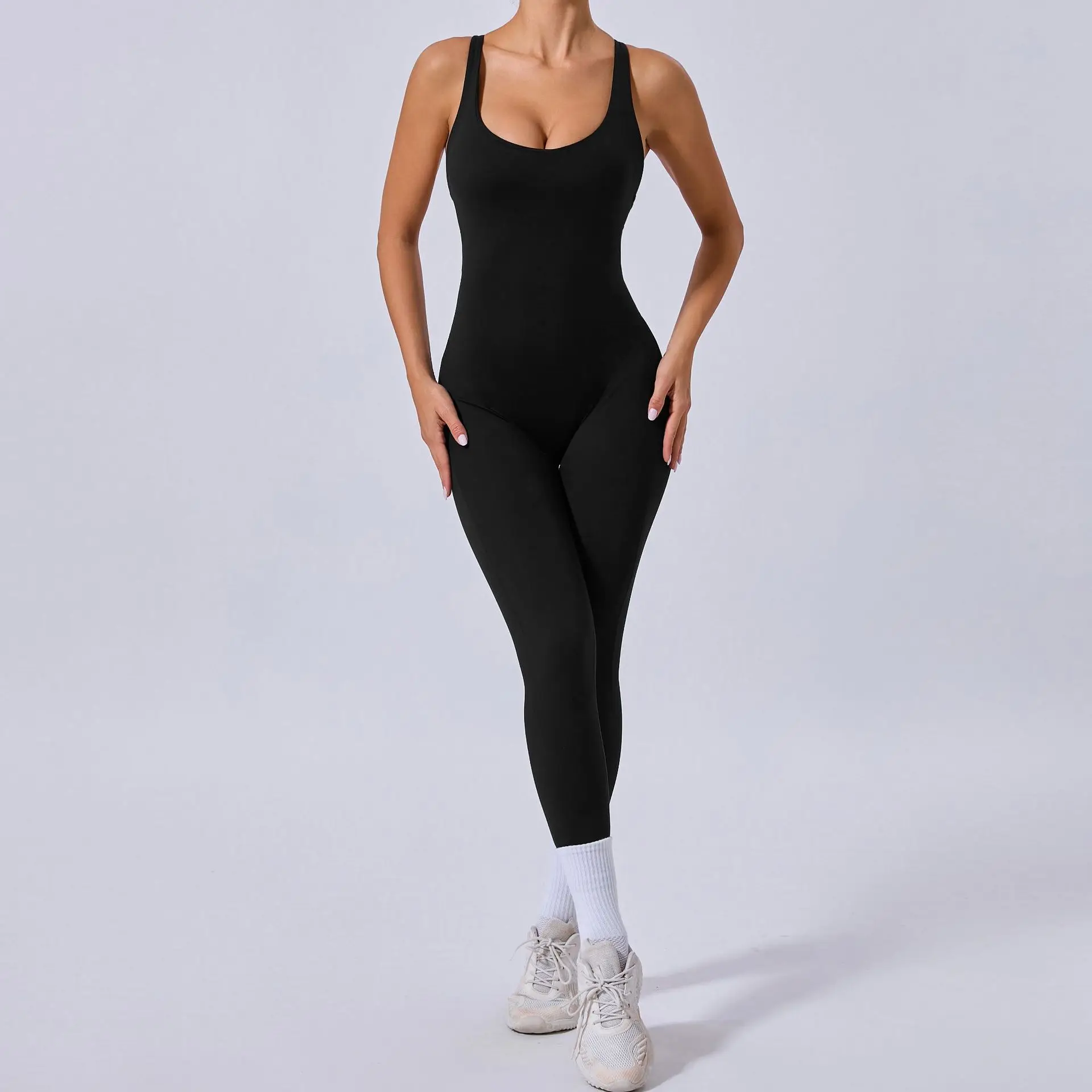 Rompers Yoga Sets Solid black hollow out bandage backless cross Jumpsuit for Women Fitness One-piece Gym Clothing Tracksuit