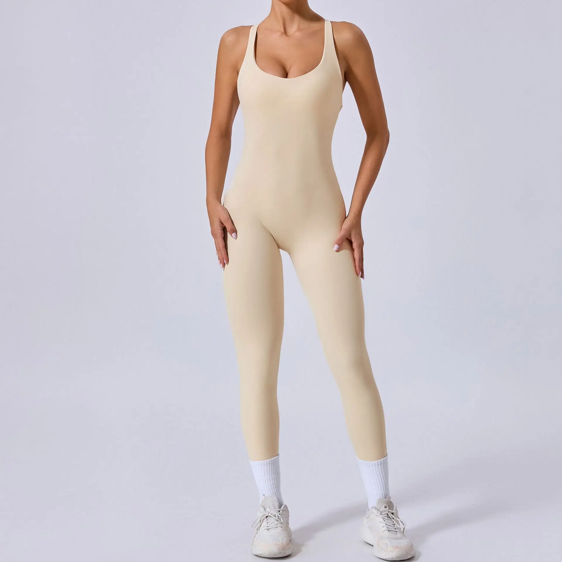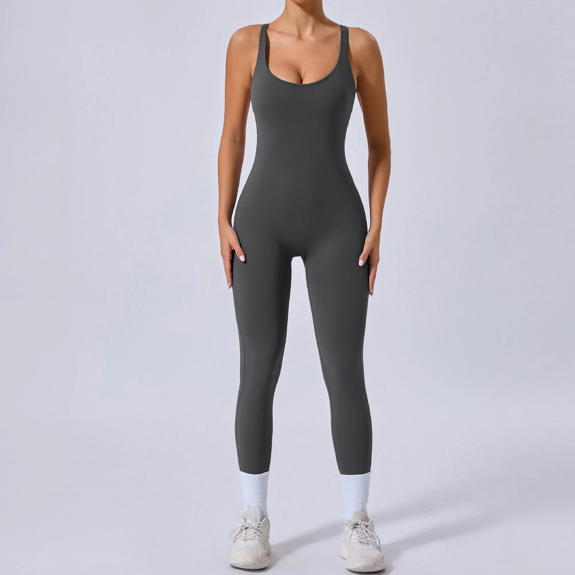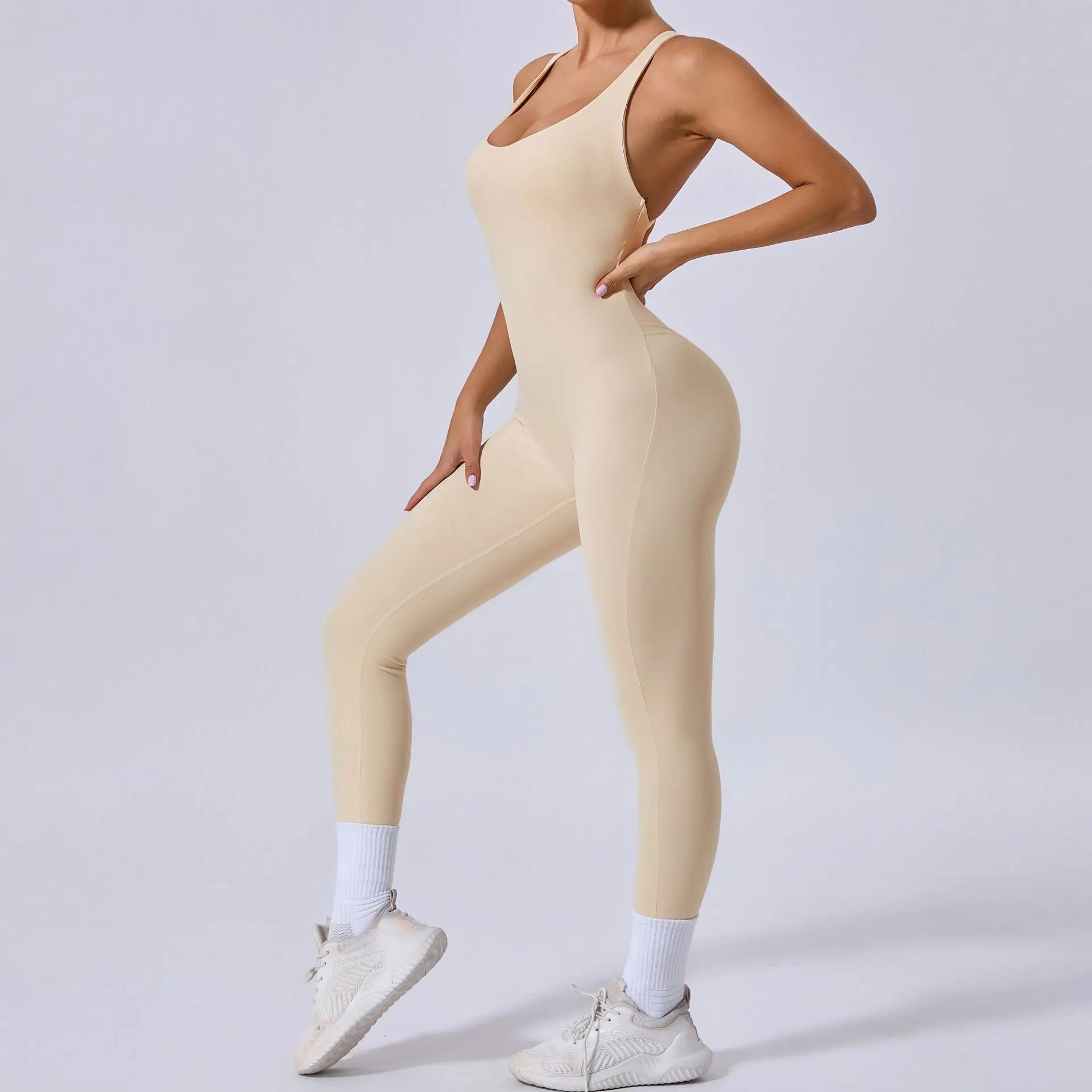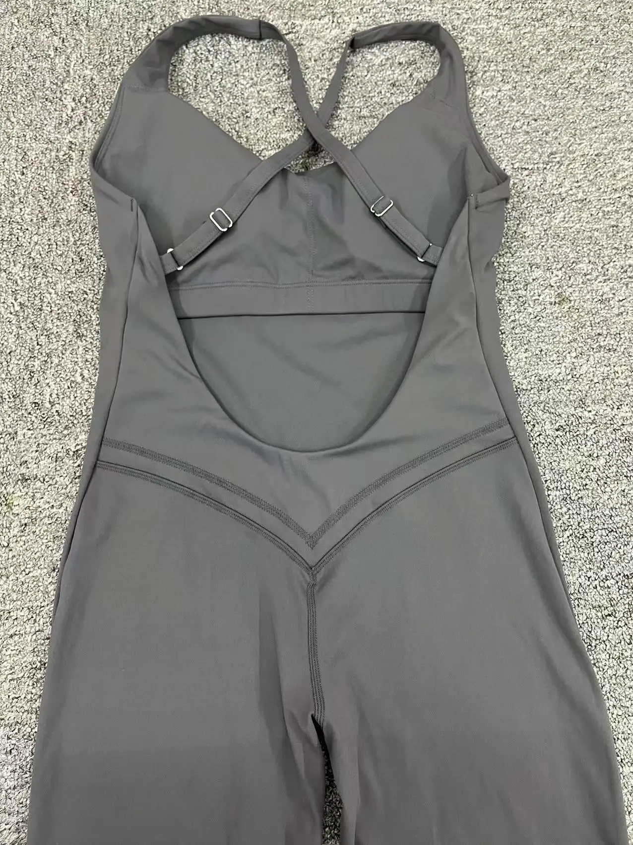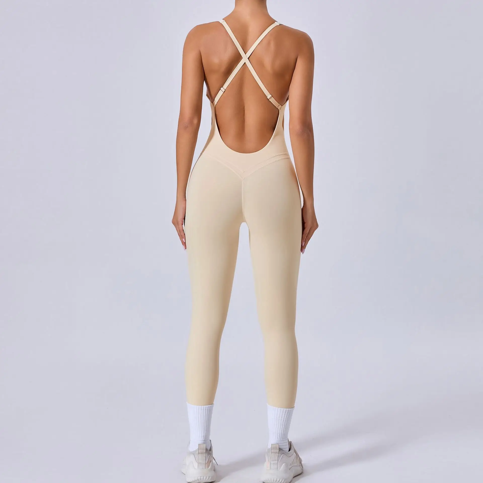 Rompers Yoga Sets Solid black hollow out bandage backless cross Jumpsuit for Women Fitness One-piece Gym Clothing Tracksuit