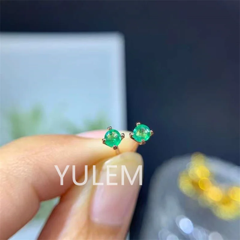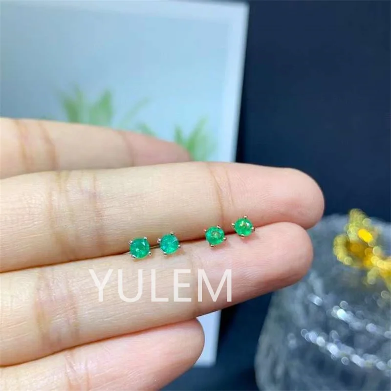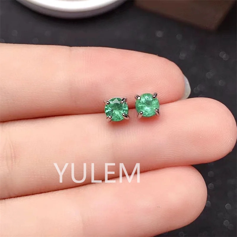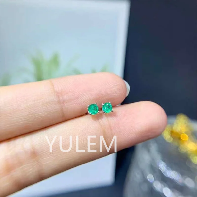Round Emerald Stud Earrings for Daily Wear 100% Natural Emerald Earrings 925 Silver Emerald Jewelry Gift for Woman