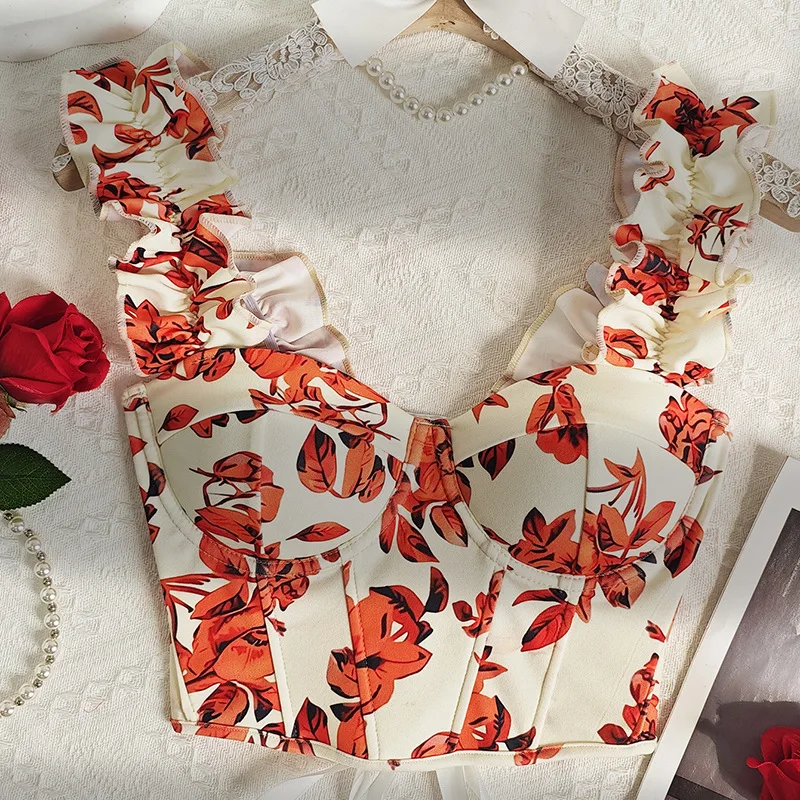 Sexy Bandage Ruffle Off Shoulder Slim Top Chic Straps Camis Slim Korean Tanks Top Elegant Crop Top Summer Women Bustier