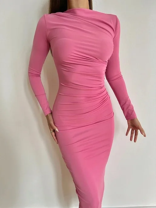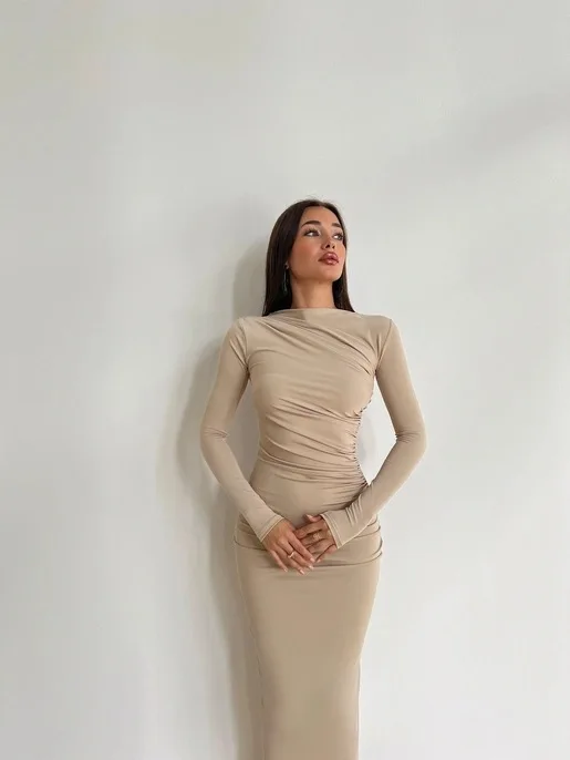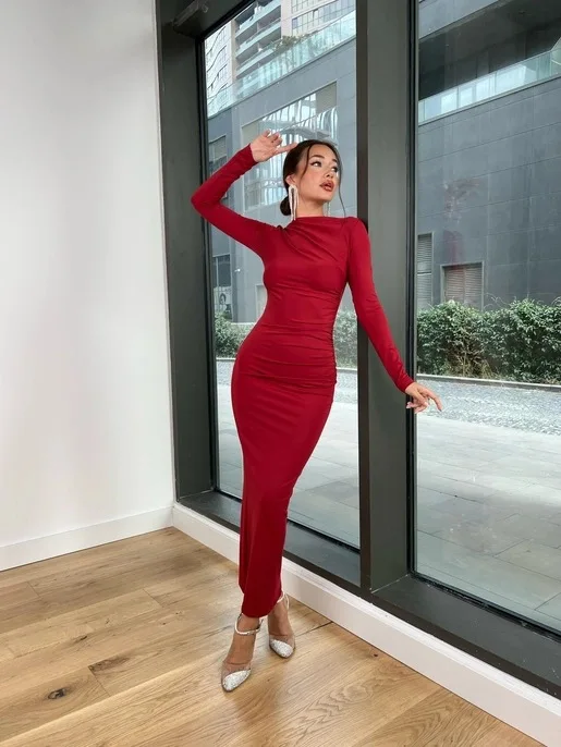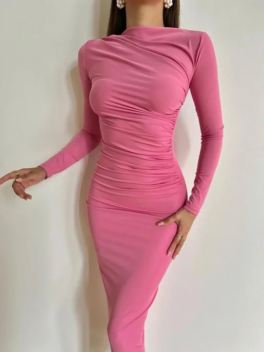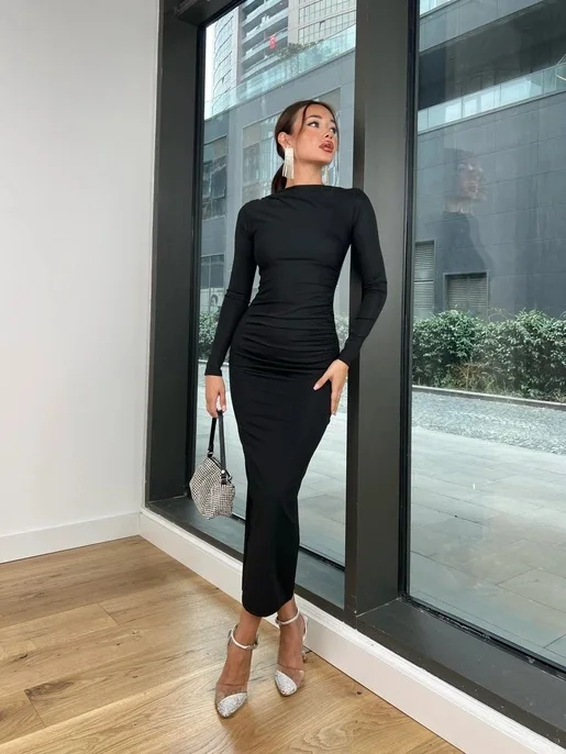 Sexy Bodycon Long Sleeve Midi Dress Women 2024 Autumn Slim Solid Party Package Hip Elegant Dresses For Women Robe Femme