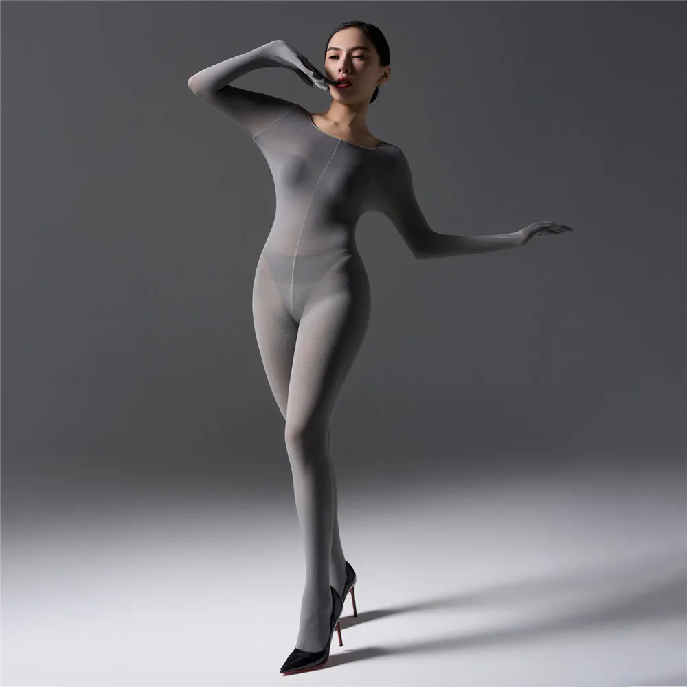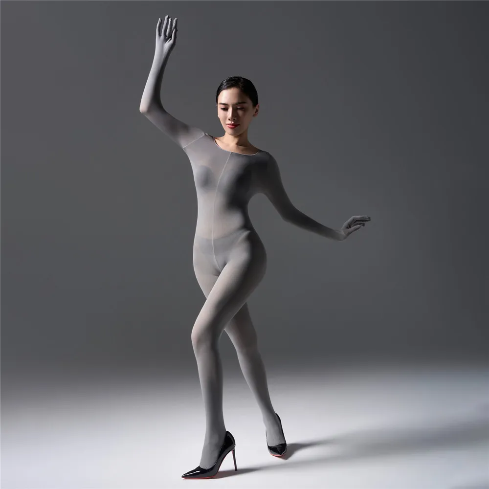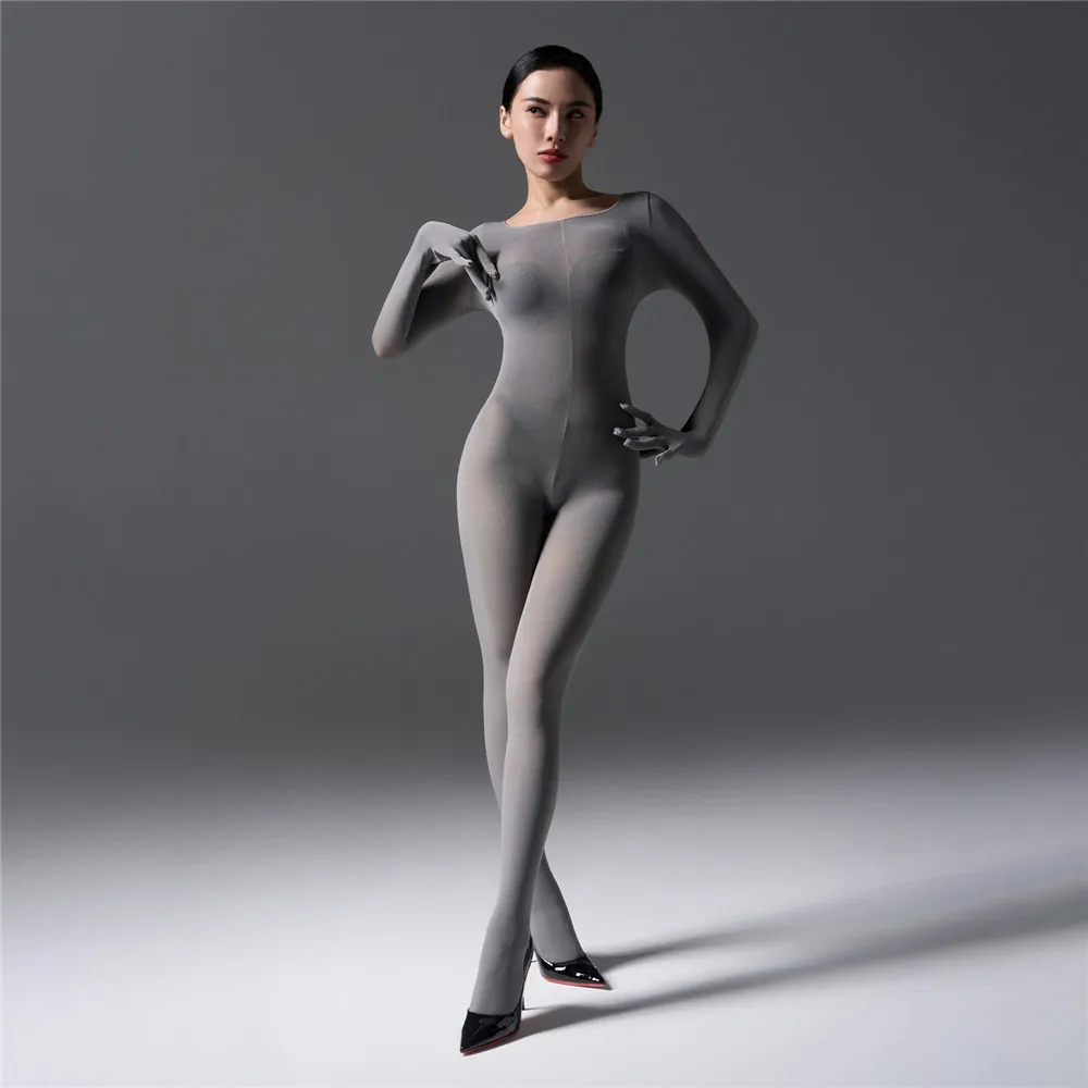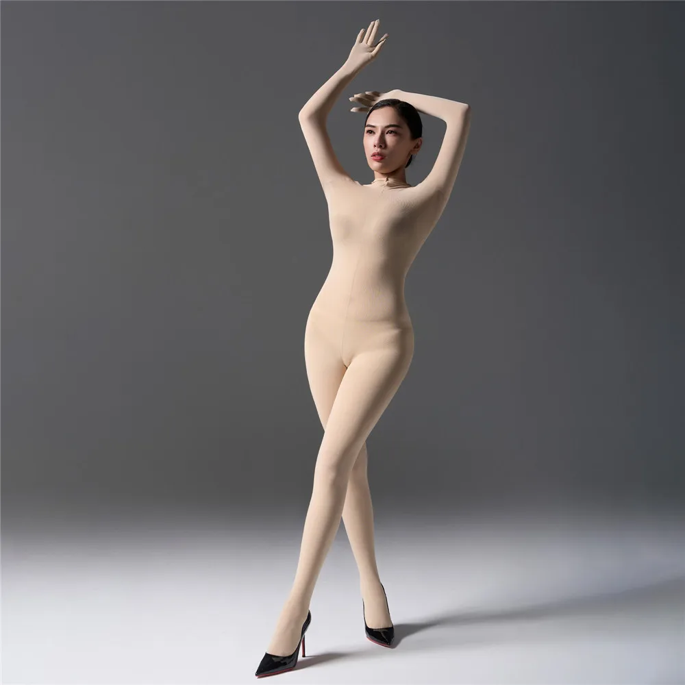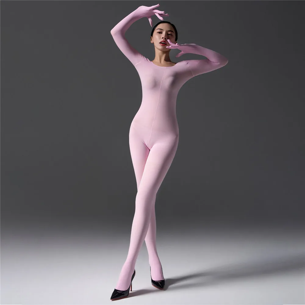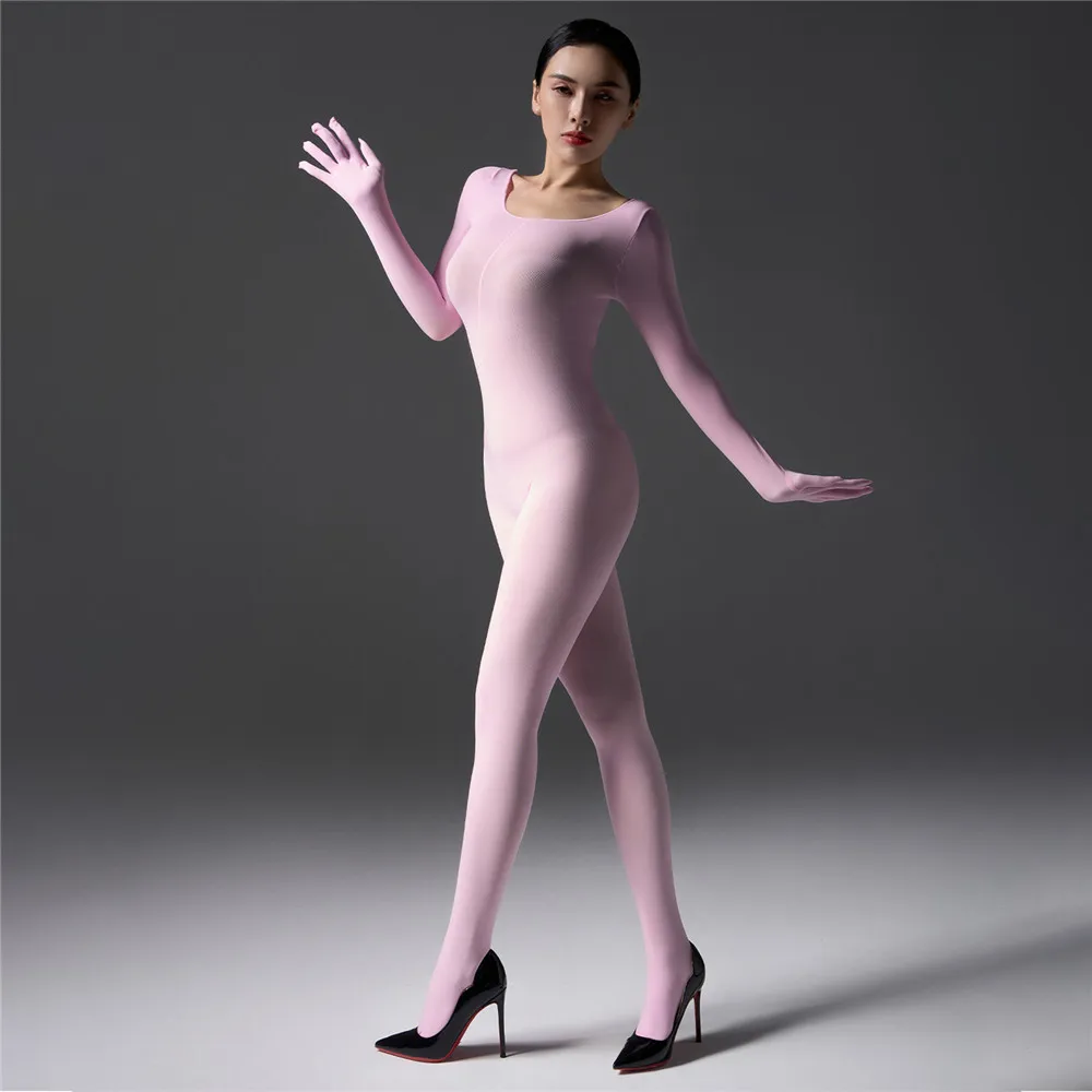 Sexy Cosplay Maid Tights Unisex Close Open Crotch Shaping Seamless Bodysuits Five Finger Gloves Jumpsuits Leotard Bodystocking