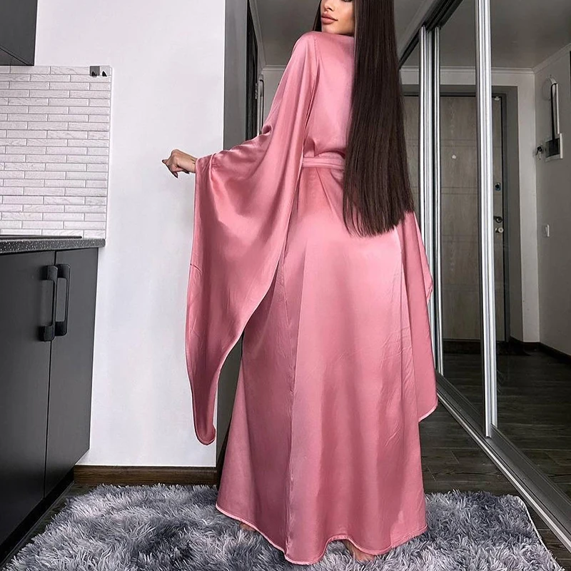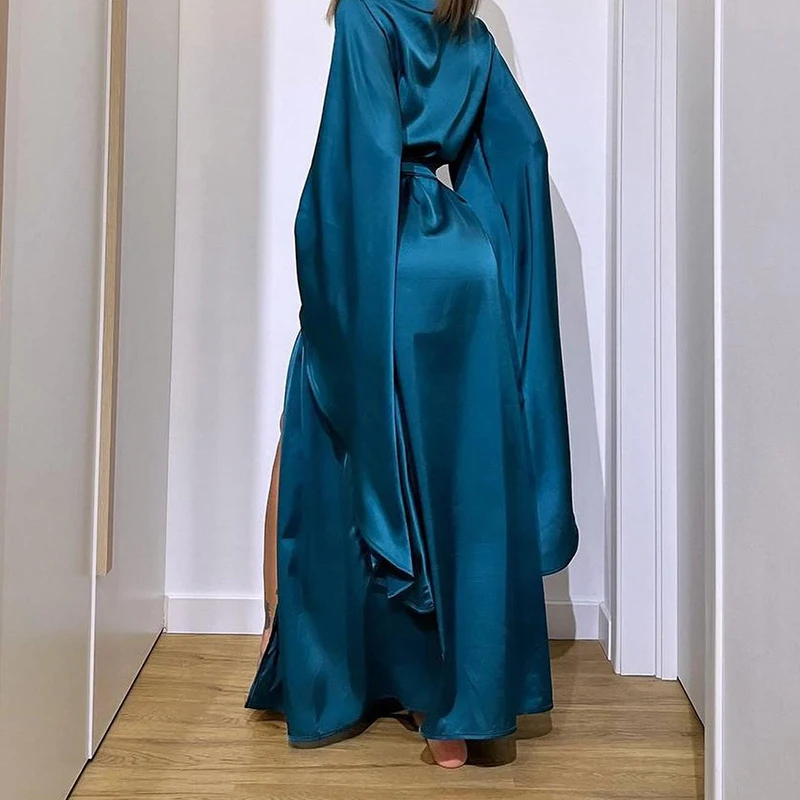 Sexy High Waisted Split Party Dresses Casual Multi-color Lace Up Women's Dress New Spring Summer Satin Loose Robe Dress Vestidos