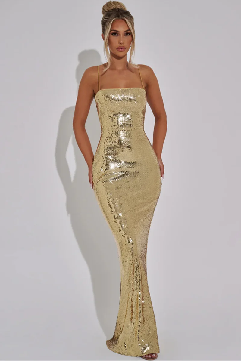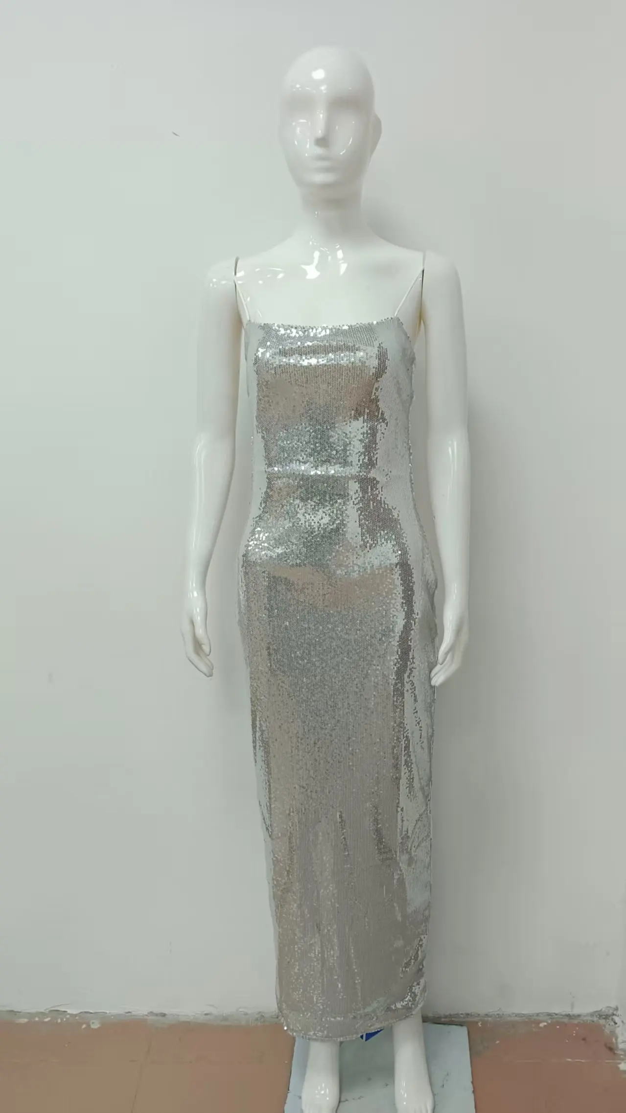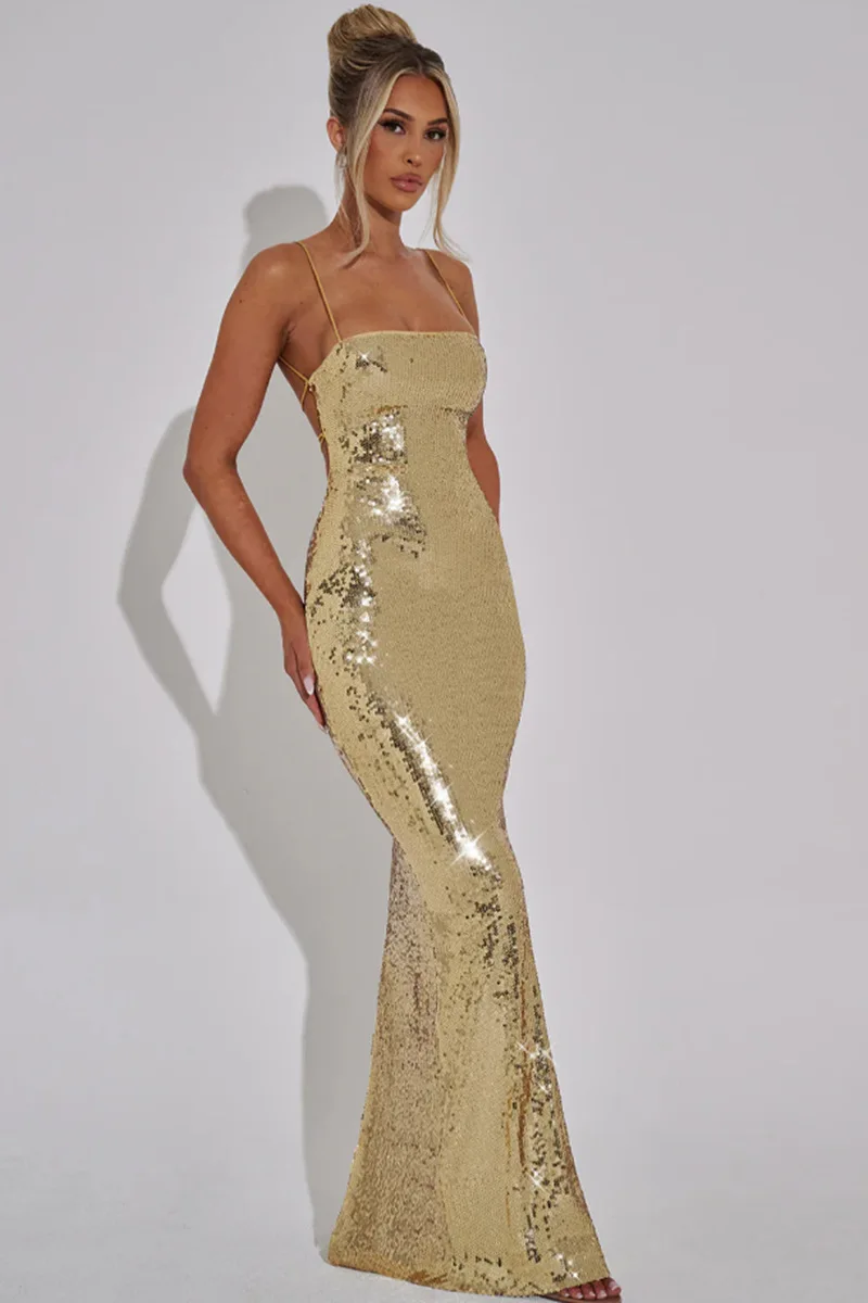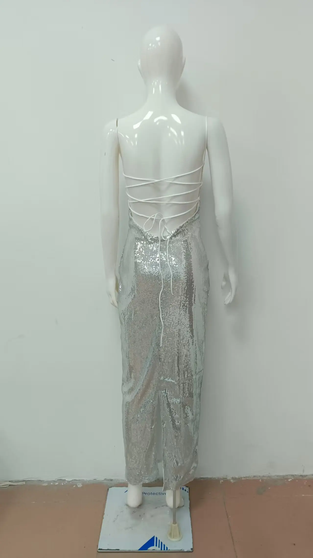 Sexy Sequin Backless Bandage Long Dress Women's Shiny Sleeveless Luxury Silver Dresses Evening Prom Party Birthday Gold Cocktail