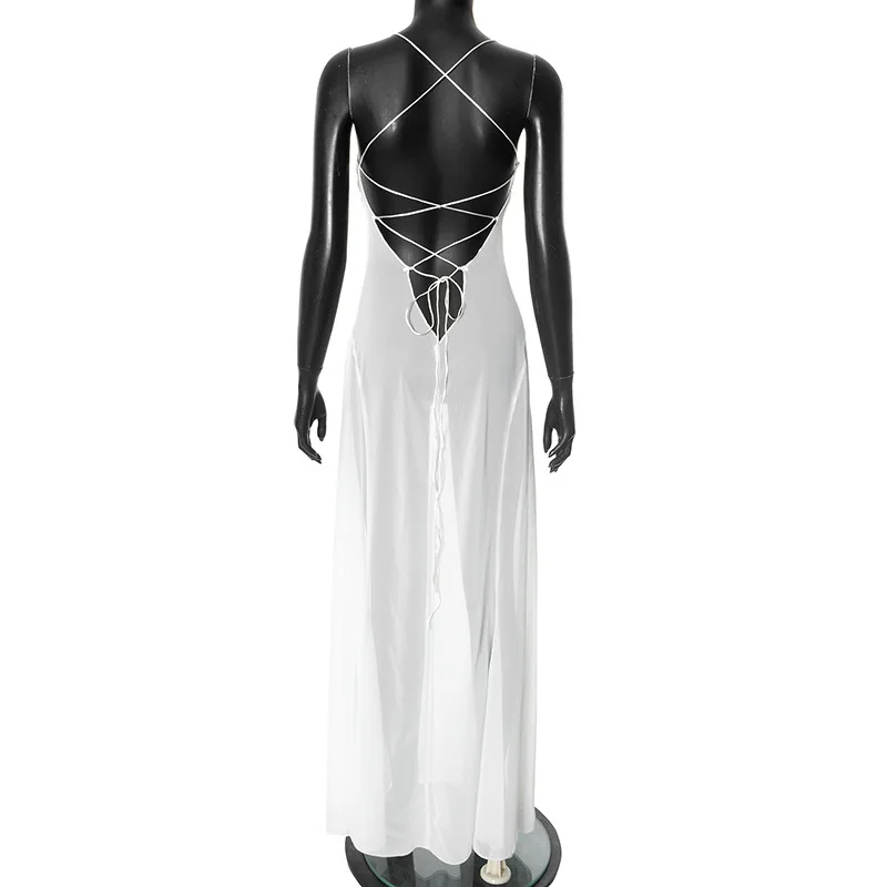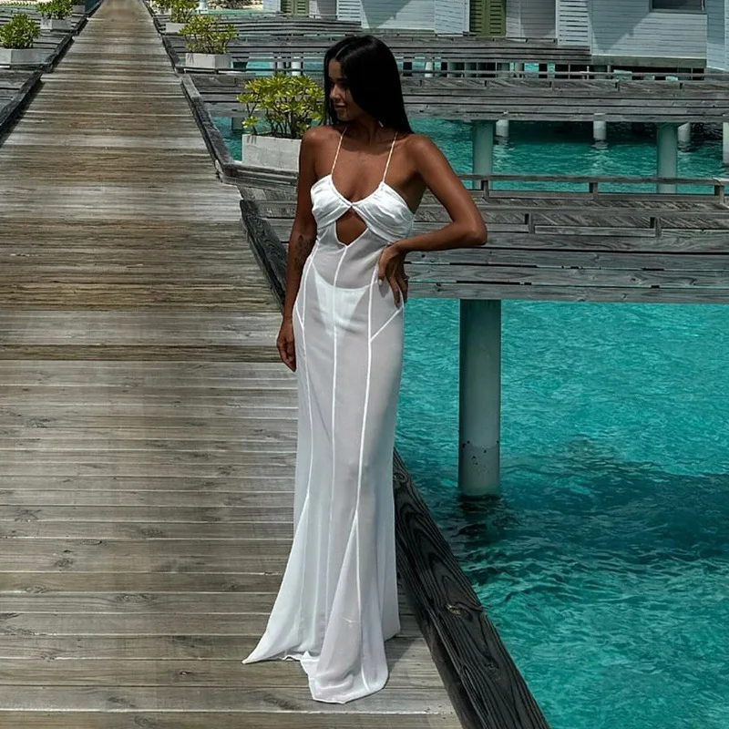 Shestyle 2025 Women Summer Outfits Beachwear Vacation Transparent Mermaid Dress Backless V Neck Spaghetti Strap Hollow Out