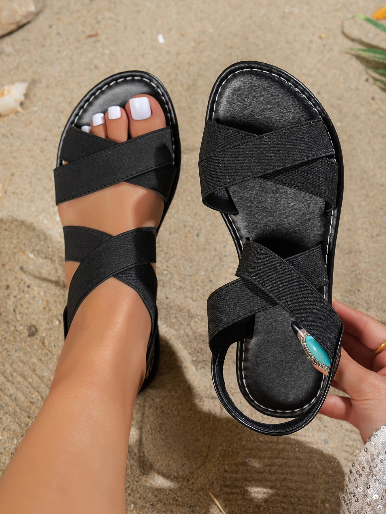 Simple and classic flat sandals, elastic band fashionable and versatile sandals