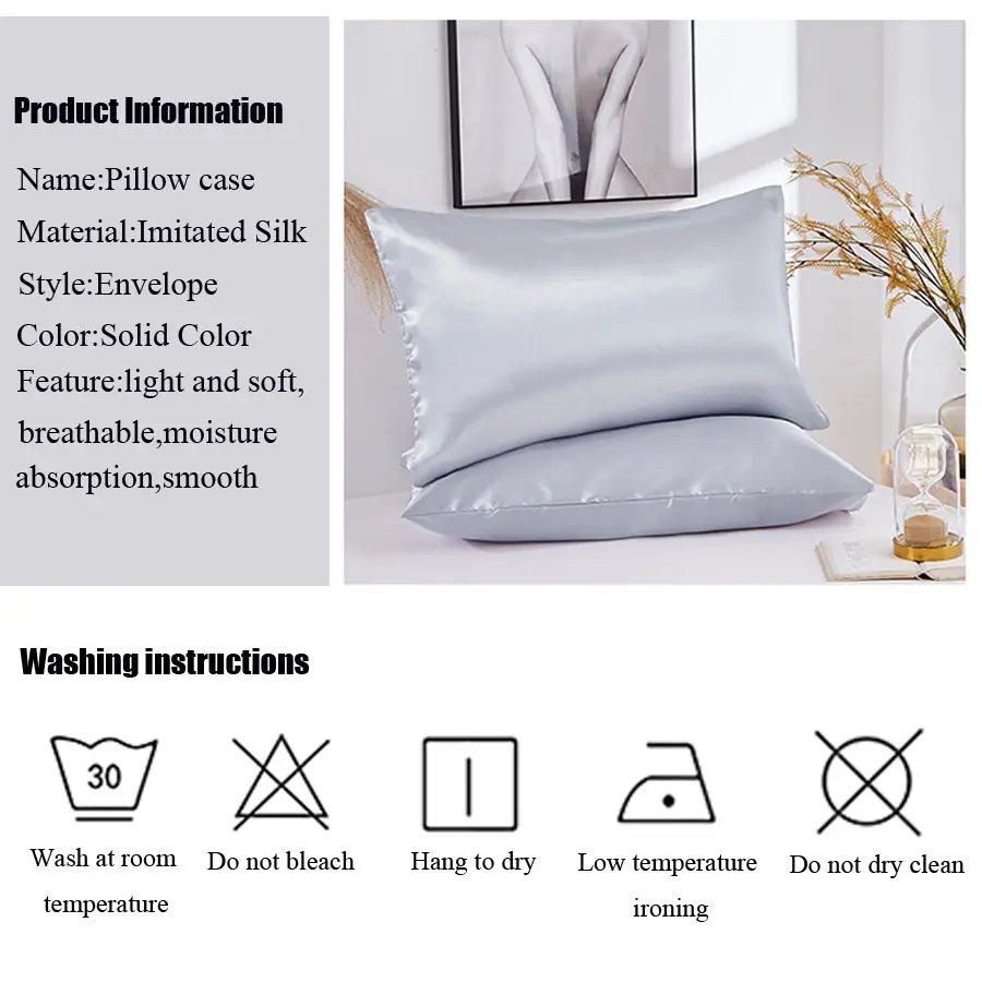 Slip Imitated Silk Pillowcase Satin Solid Pillow Case Cover Bed Linings White Gray Champagne Soft Comfortable Twin King Queen