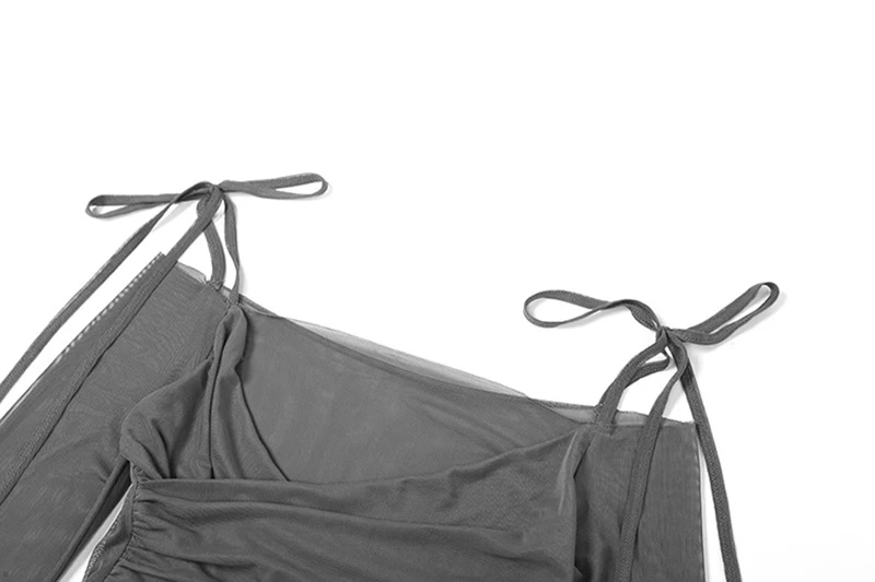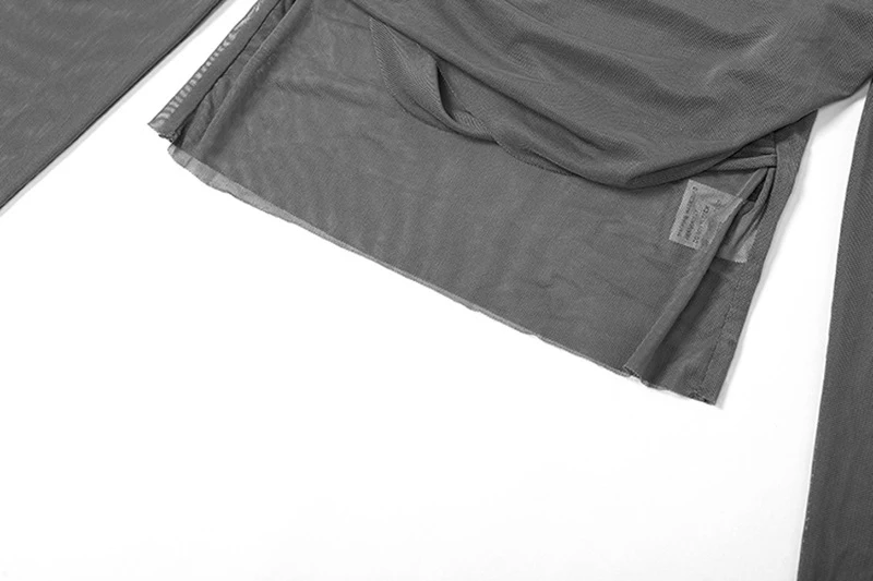 Solid Slash Neck Crop Tops Sexy Off Shoulder Straps Long Sleeve T-Shirts Slim Mesh Tees Y2K Streetwear Women