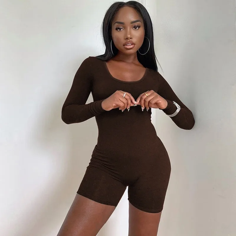 Sports Fitness Black Playsuits Women Autumn New Fashion Skinny Long Sleeves Solid Rompers Bodycon Casual Streetwear Sexy Overall