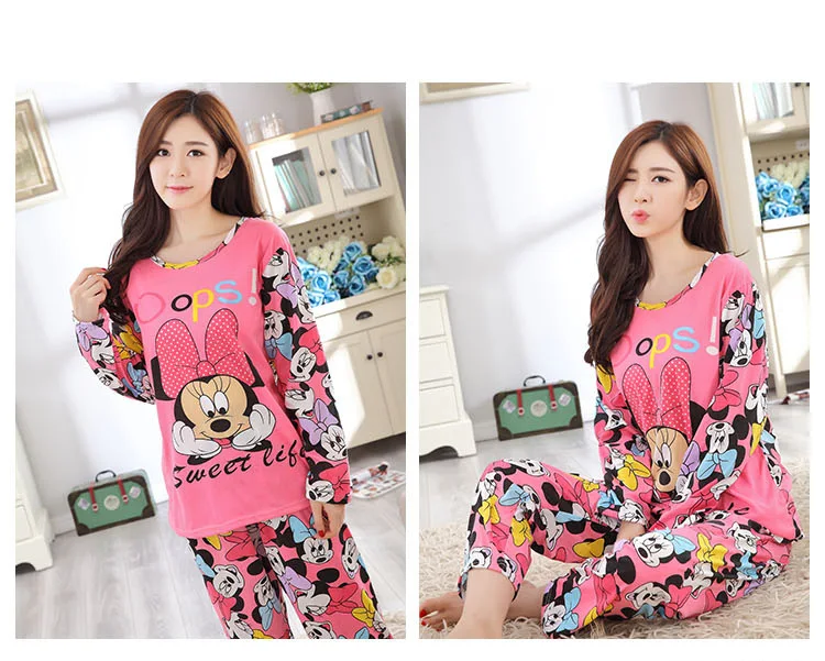 Spring And Autumn Long Sleeve+Long Pants Two Piece Pajama Set For Women Cartoon Cute Mickey Home Clothes Set