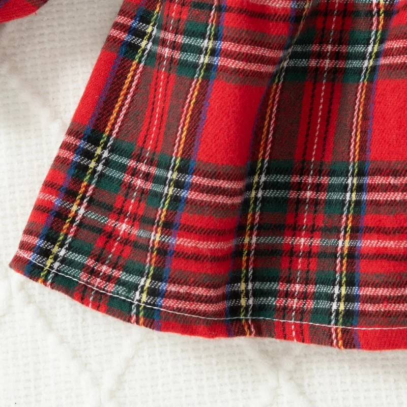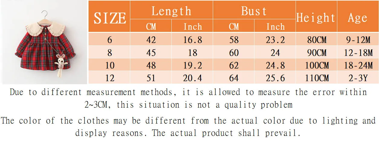 Spring and Autumn New Baby Girls Long Sleeve Dress Academy Style Checkered Children's Clothing+Rabbit Bag (9 Months-3 Years Old)