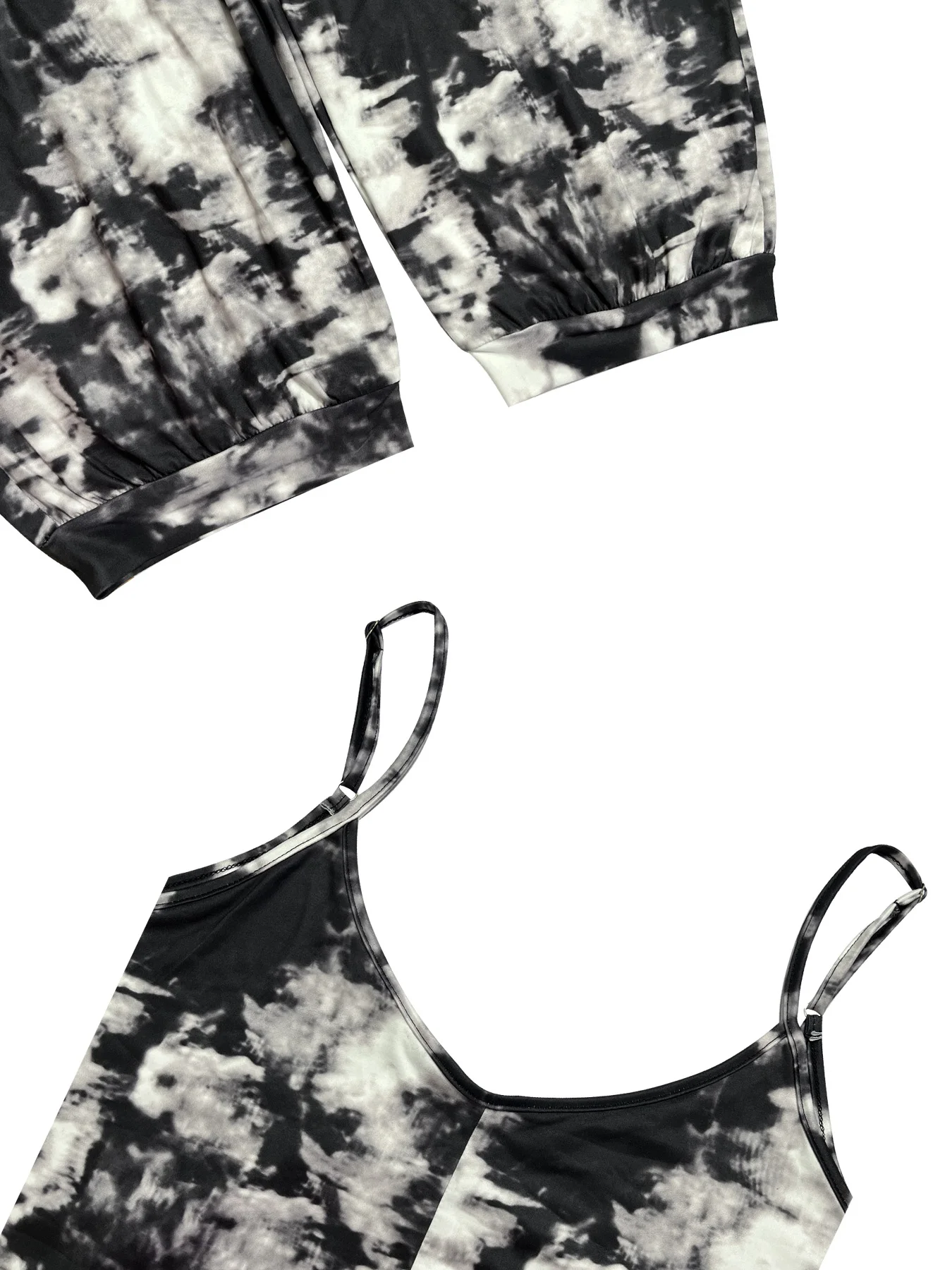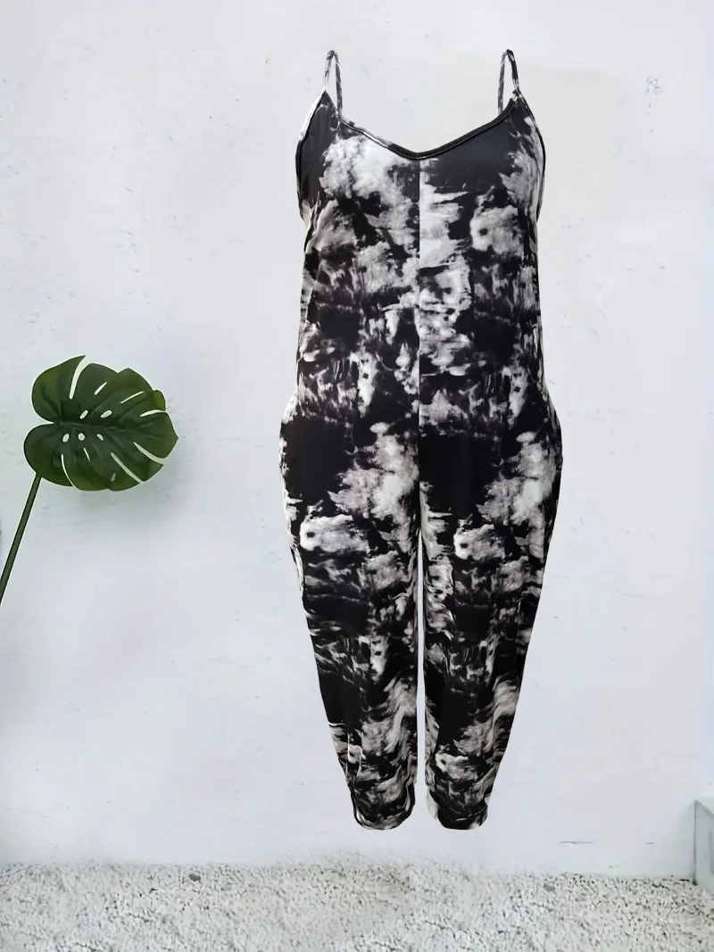 Spring and summer plus size suspender jumpsuit tie-dye print with pockets