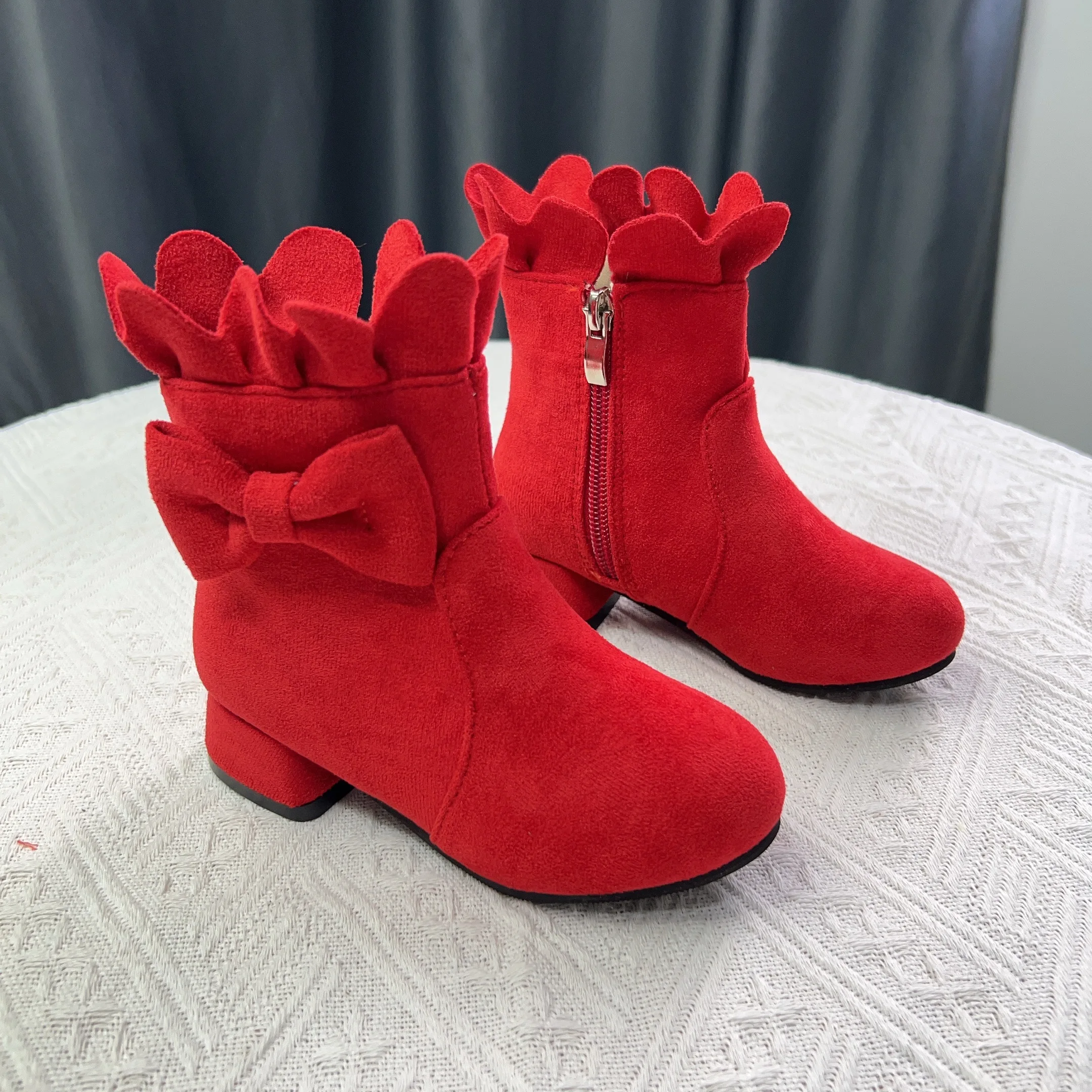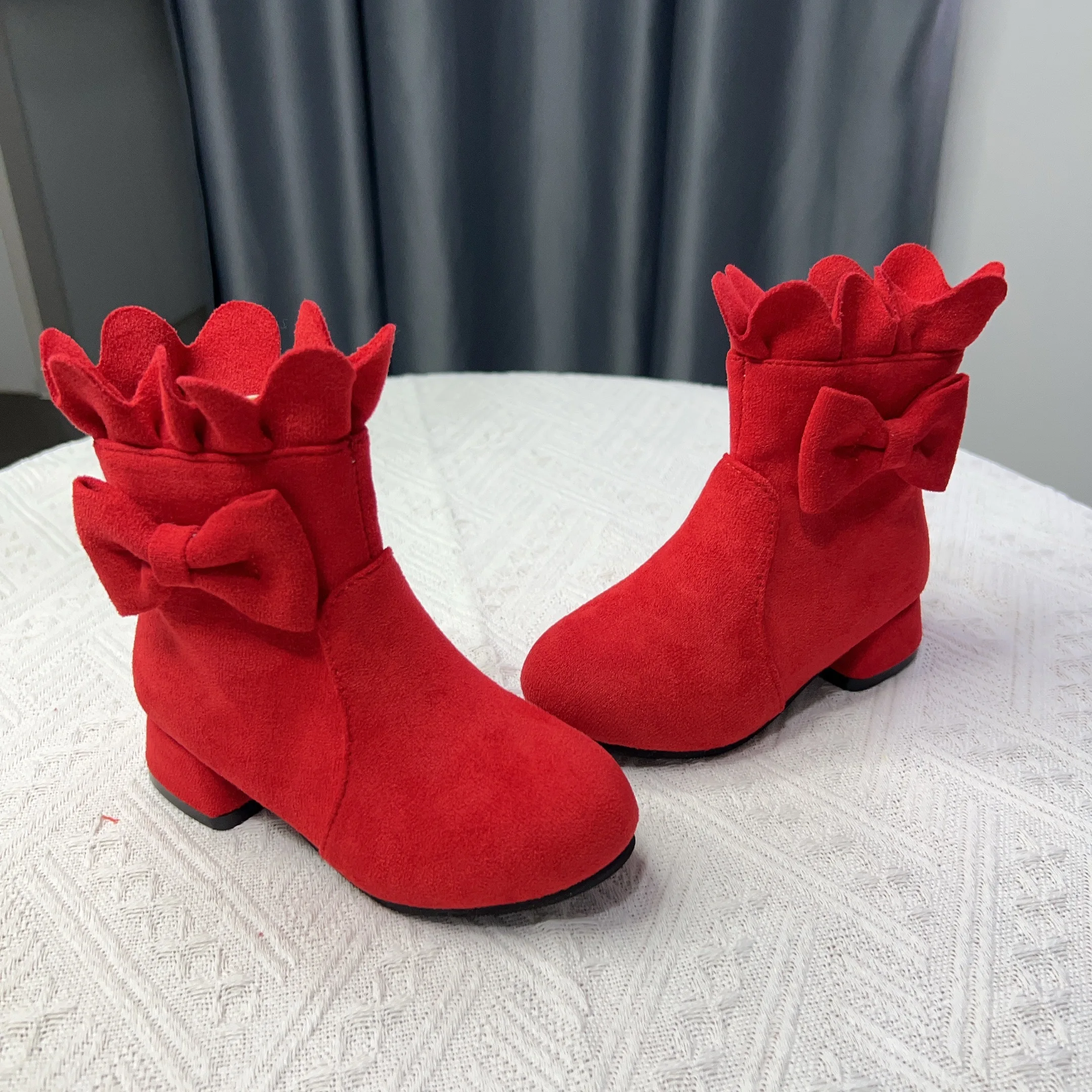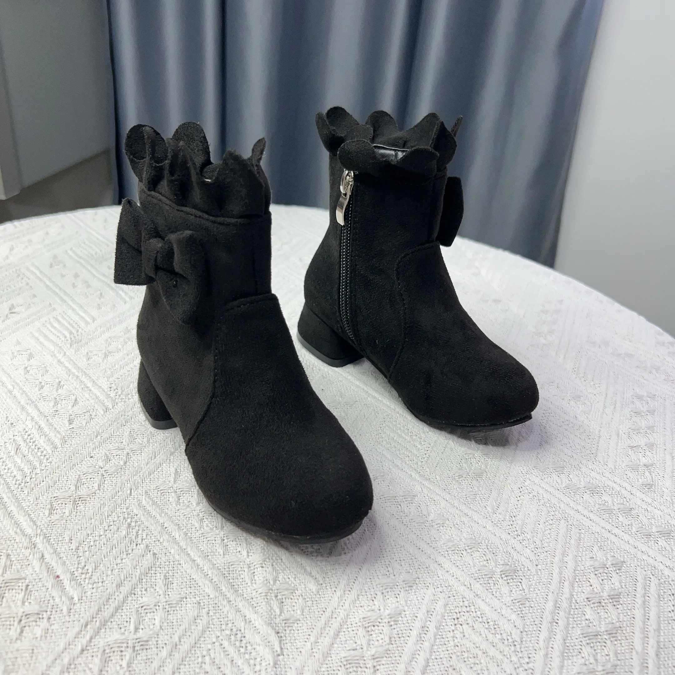 Spring Autumn Bow Girls Fashion Toddler Boots PU Leather Low Heel Kids Princess Boots Party Zip Children Ankle Baby Girl Shoes