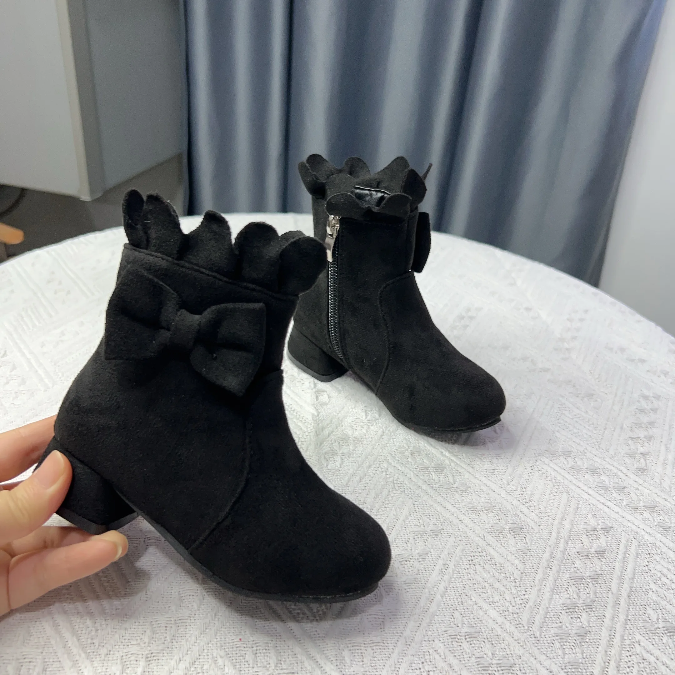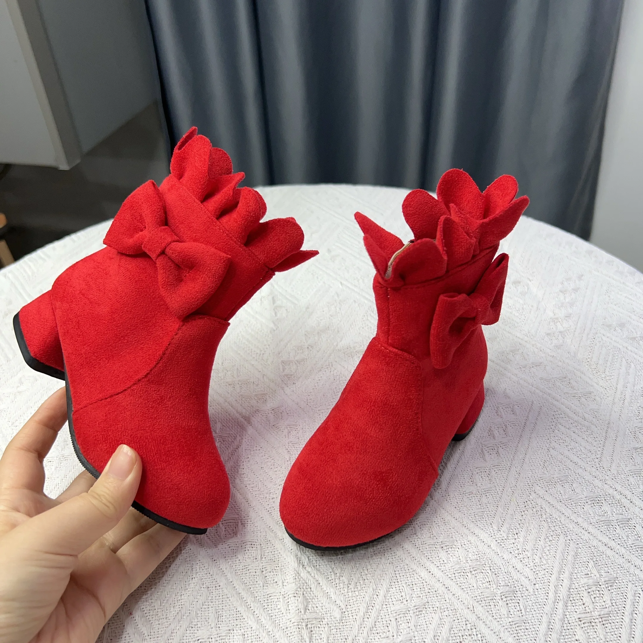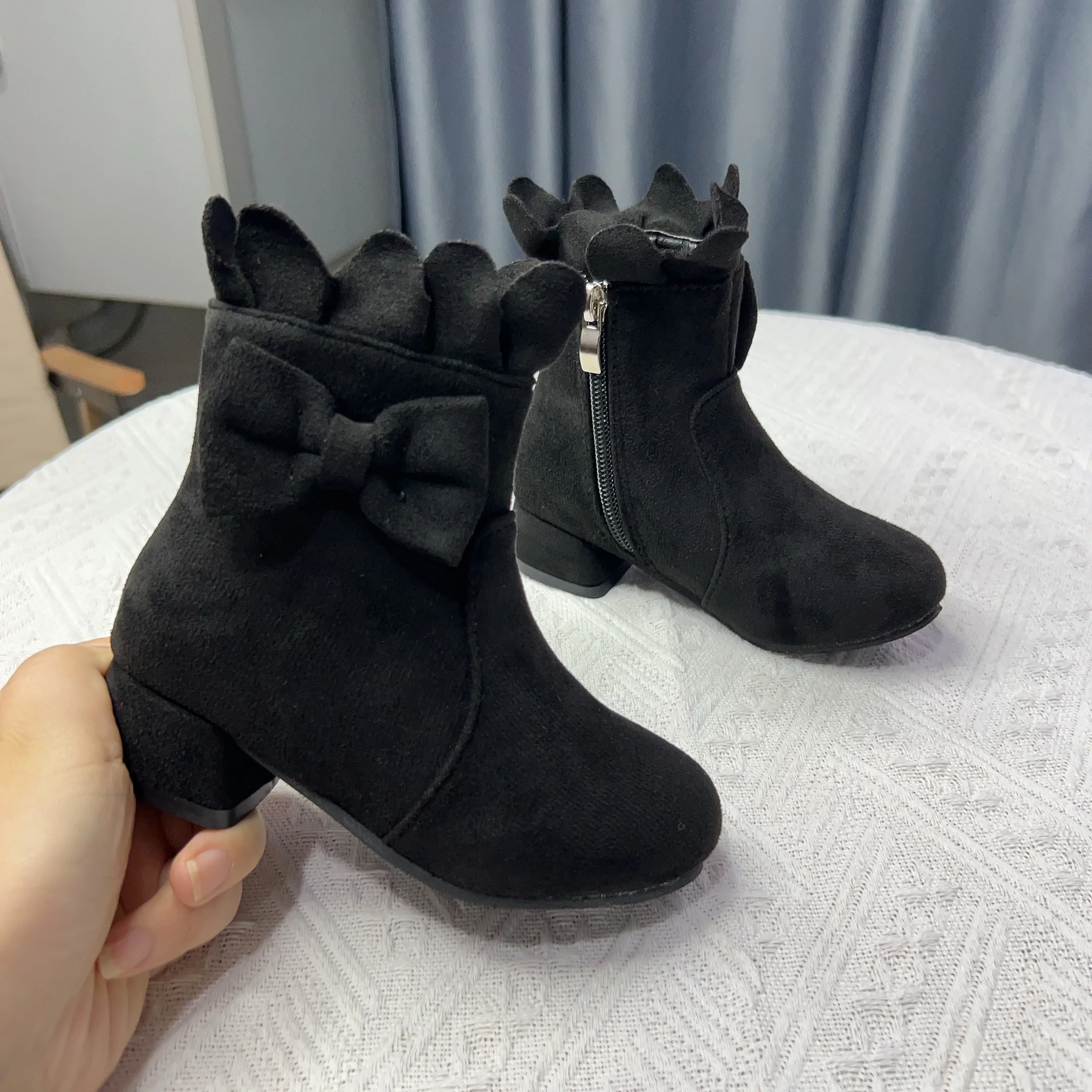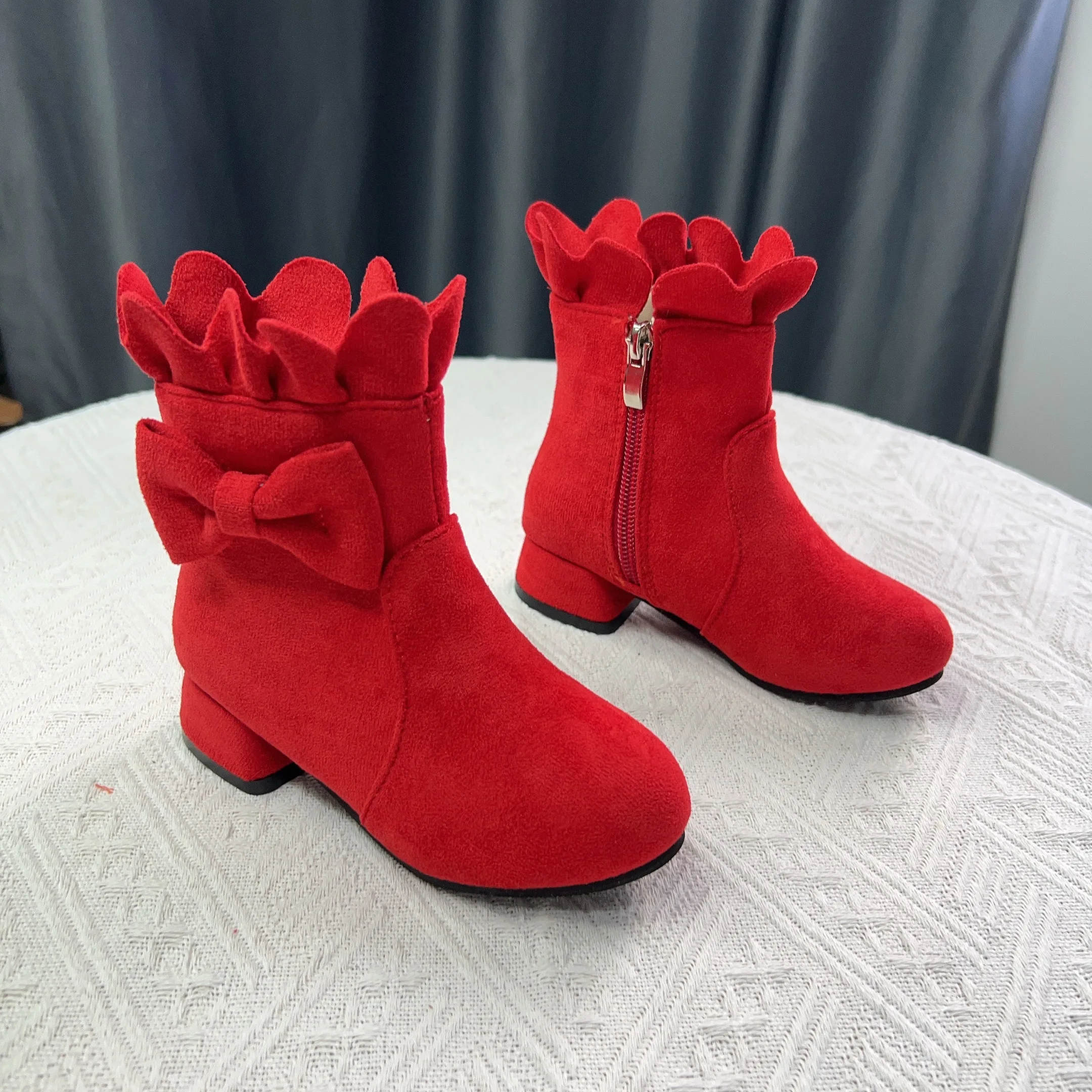 Spring Autumn Bow Girls Fashion Toddler Boots PU Leather Low Heel Kids Princess Boots Party Zip Children Ankle Baby Girl Shoes