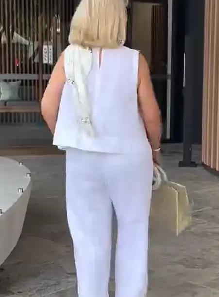 Spring Summer Cotton Linen Solid Color Sleeveless Vest Top Women Pants Suit Casual Pocket Elegant Female Office Retro 2Piece Set