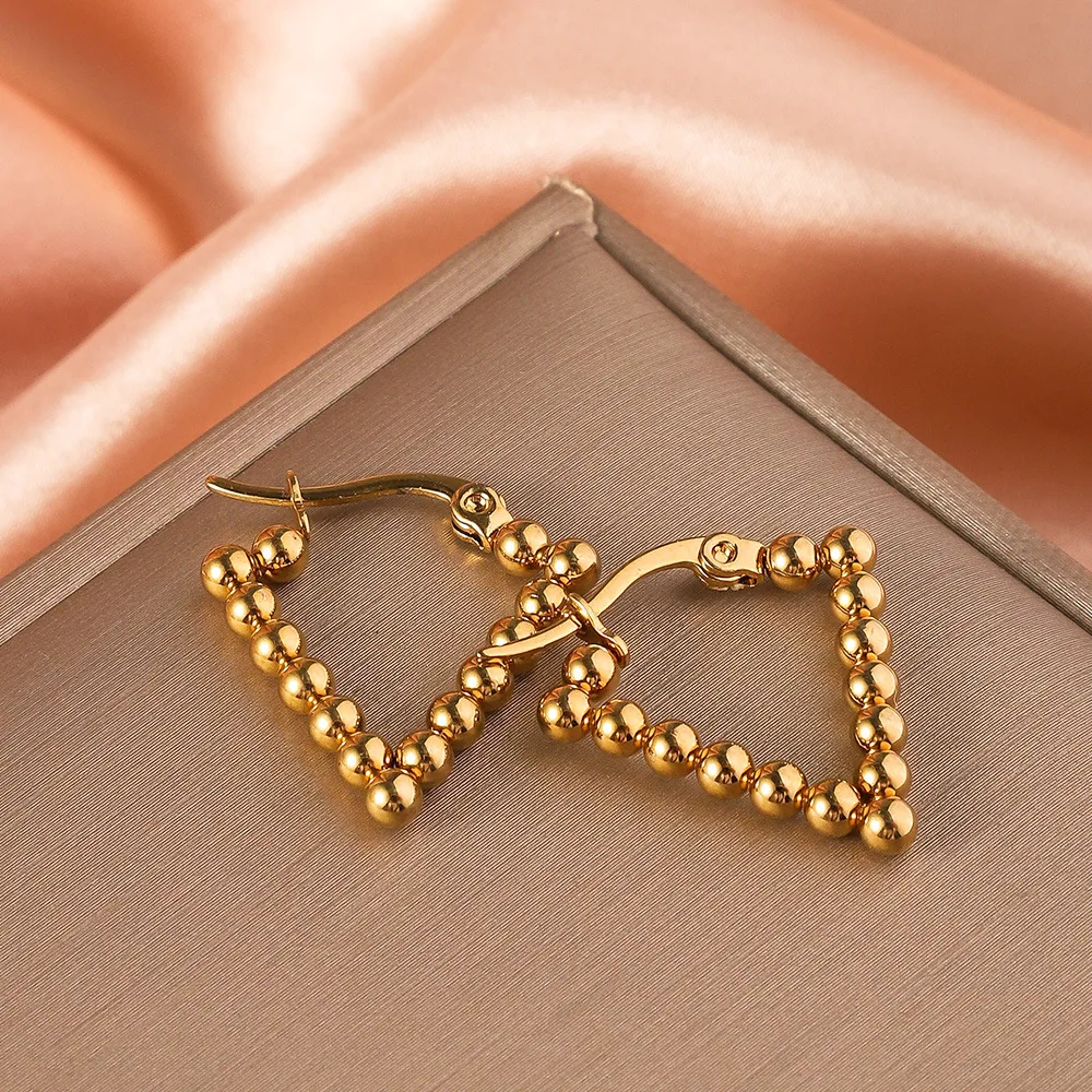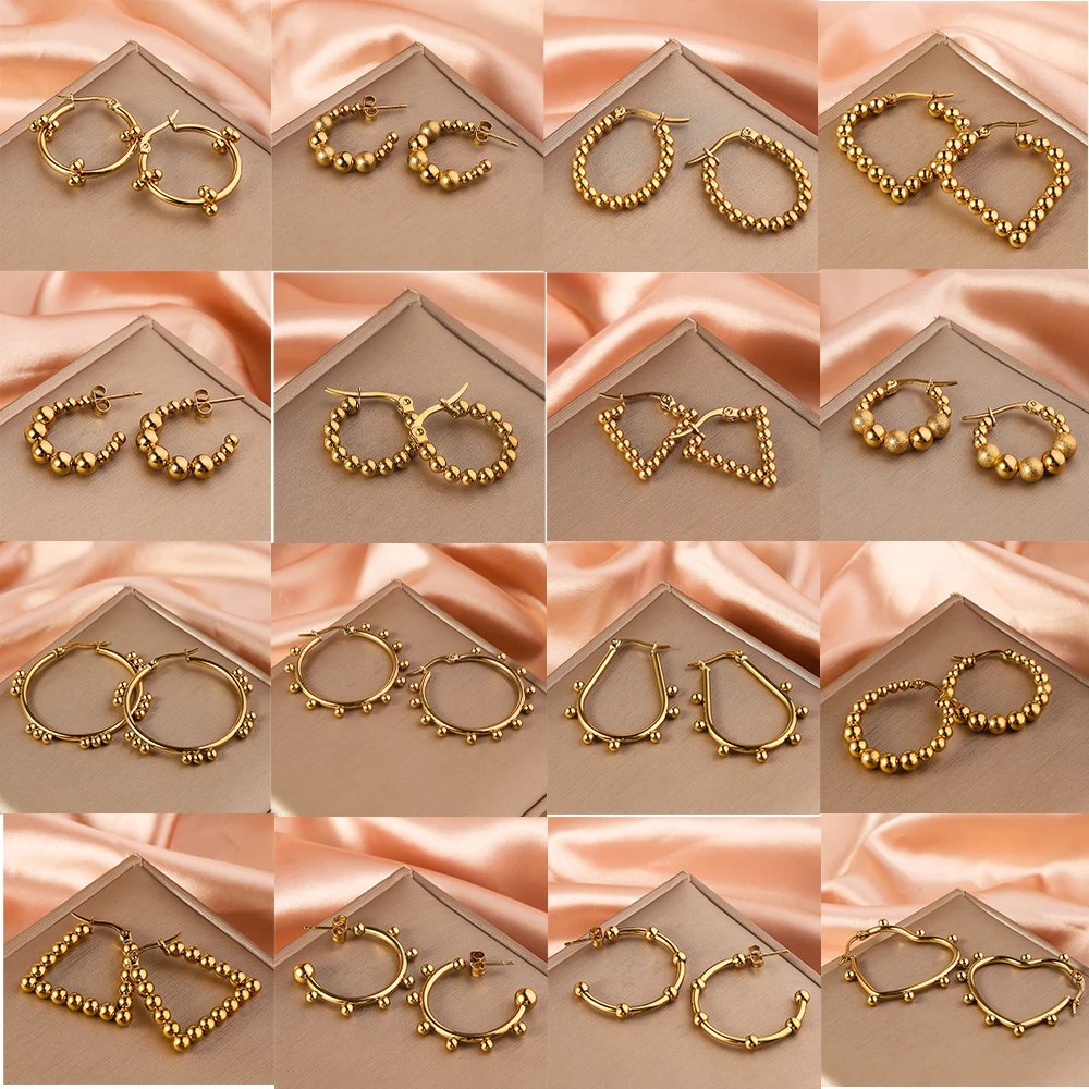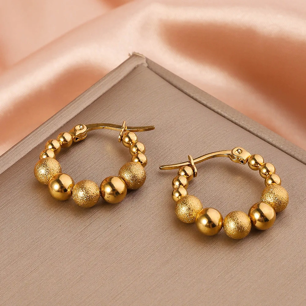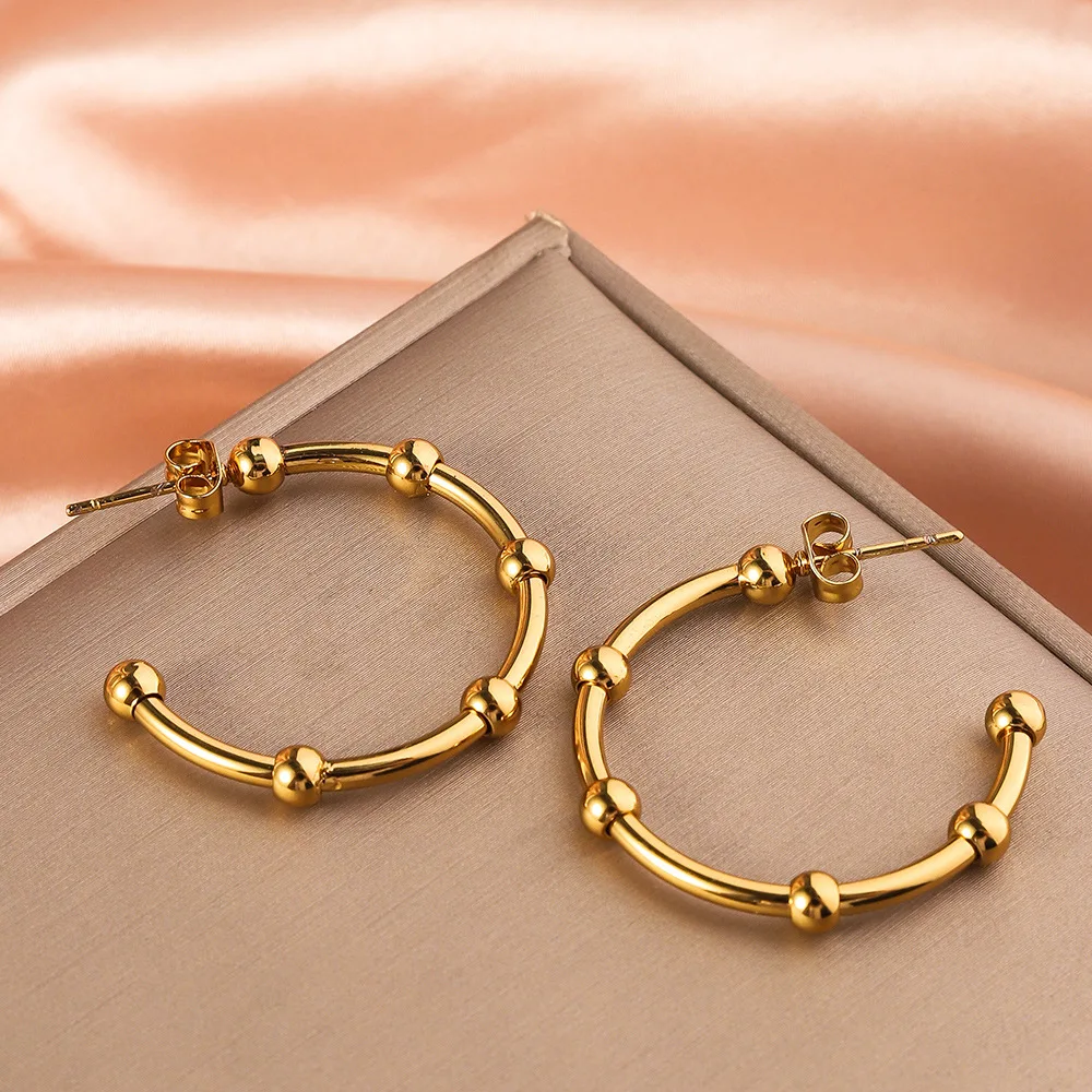 Stainless Steel Women's Hoop Earrings, Non Fading Fashionable Gold Color Metal Bead Earrings, Classic Jewelry Accessories