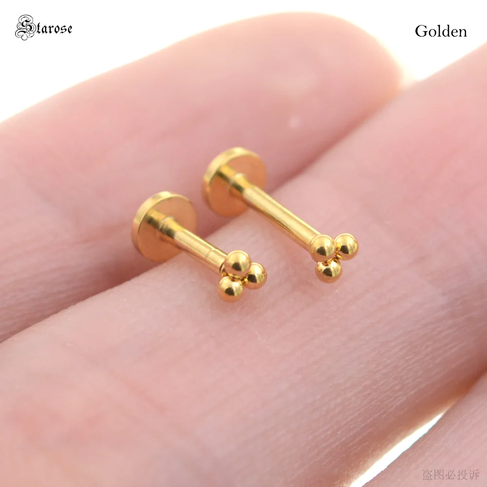 Ear Labret Stud piercing Size: Nose Studs 2.7mm; Bar size 1.2x6/8mm (16G). Flat end 4mm