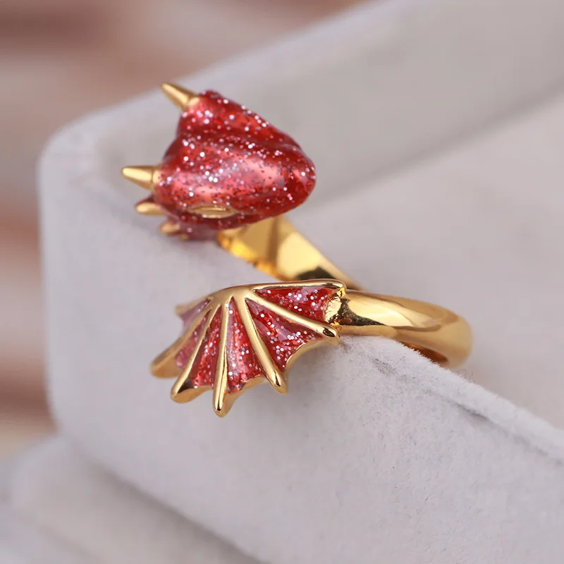 Steel Fun Jewelry Punk Enamel Dragon Ring for Women Girls Fashion Cute Flying Dragon Childlike Adjustable Cartoon Ring Wholesale