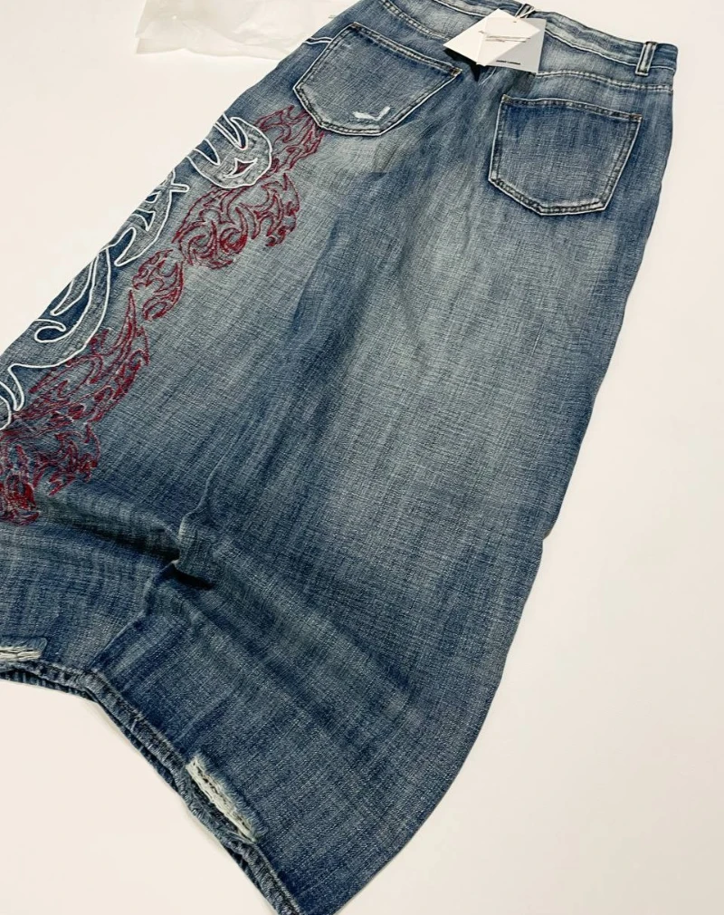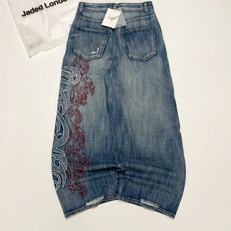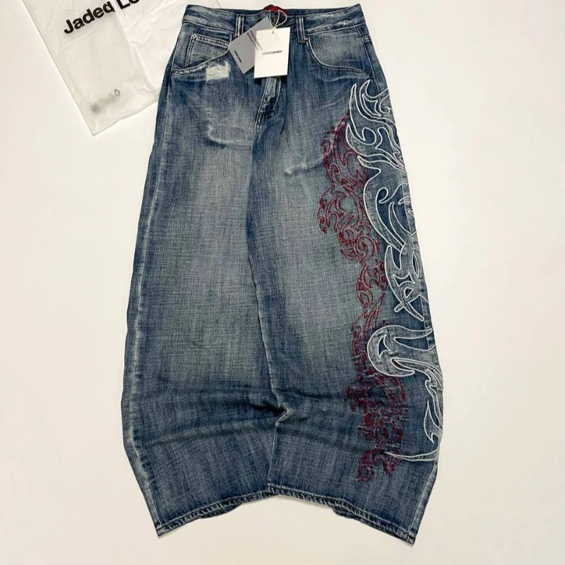 Street Fashion Y2K Asymmetrical Oversized Pattern High Waist Baggy Women Jean Vintage Harajuku Streetwear Straight Wide-leg Jean