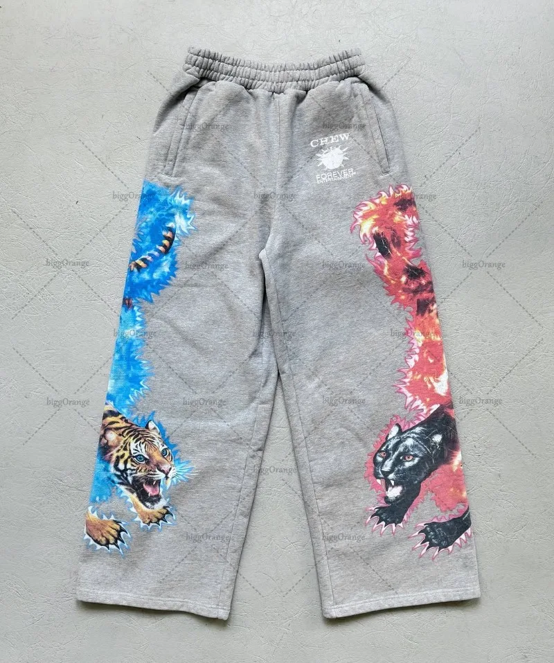 Street Hip-hop Goth Tiger Pattern Casual Women Suit American Retro Harajuku Y2K Fashion Cotton Oversized Hoodie Sport Pants