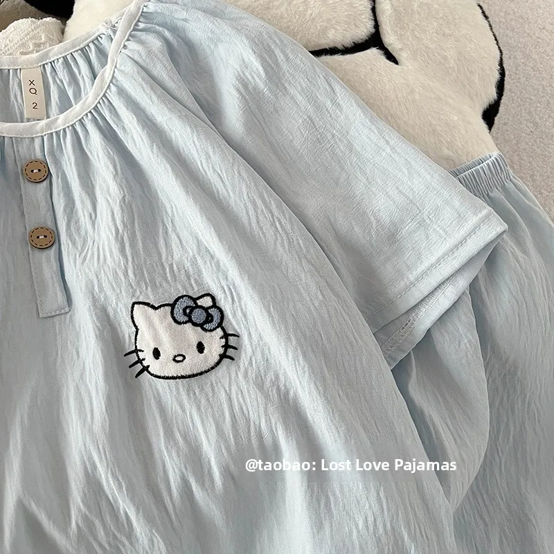 Summer New Cloud Cotton round Ne Button Sweet Cartoon Spwear Two-Piece Set Lightweight Comfortable Student Home Clothes