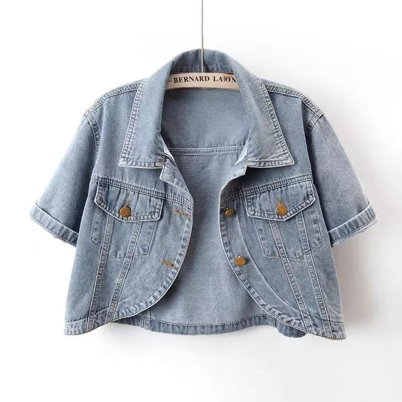 Summer New Joker Casual Short-sleeved Denim Jacket 2025 Women Short Blouse Shawl Waistcoat Female Jaqueta Jeans Feminina