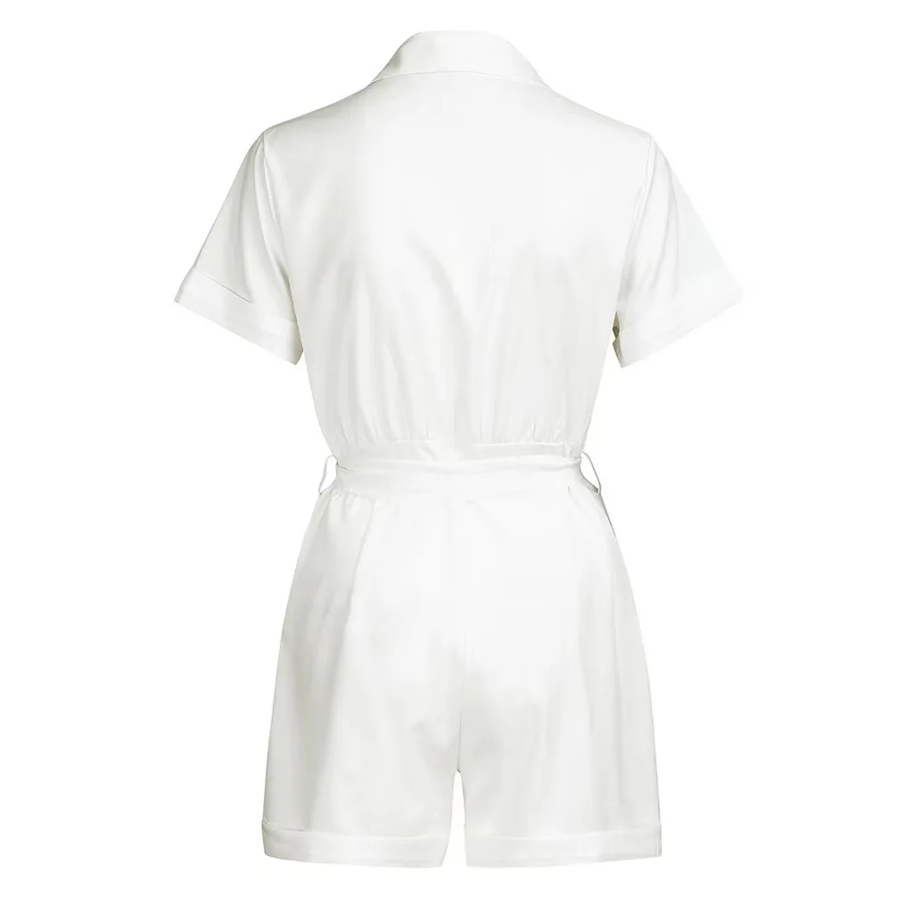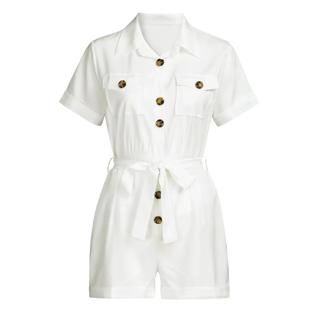 Summer New Solid Short Style Jumpsuit For Women Fashion Lapel Single Breasted Lace Up Jumpsuits Elegant Office Lady Commuting