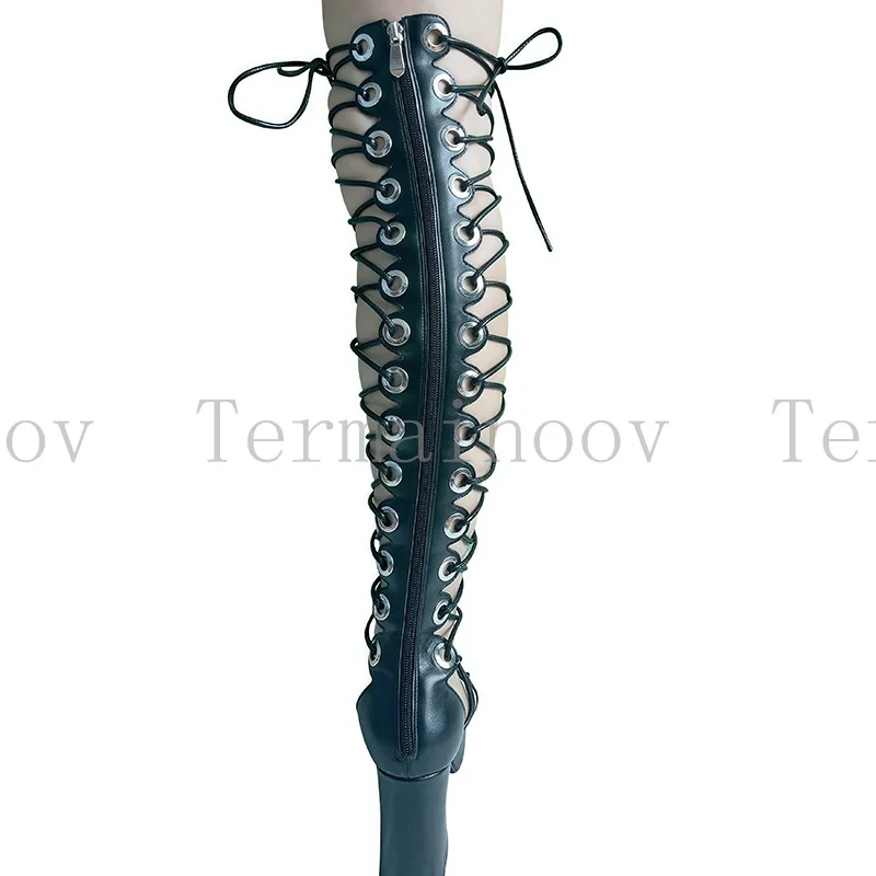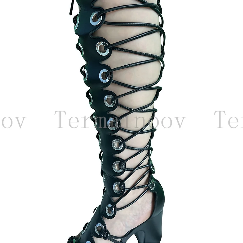 Summer Sexy Women Over Knee High Sandals Fashion Thick Heel Cross Straps Back Zipper Gladiator Shoes Holiday Party Shoes Dress