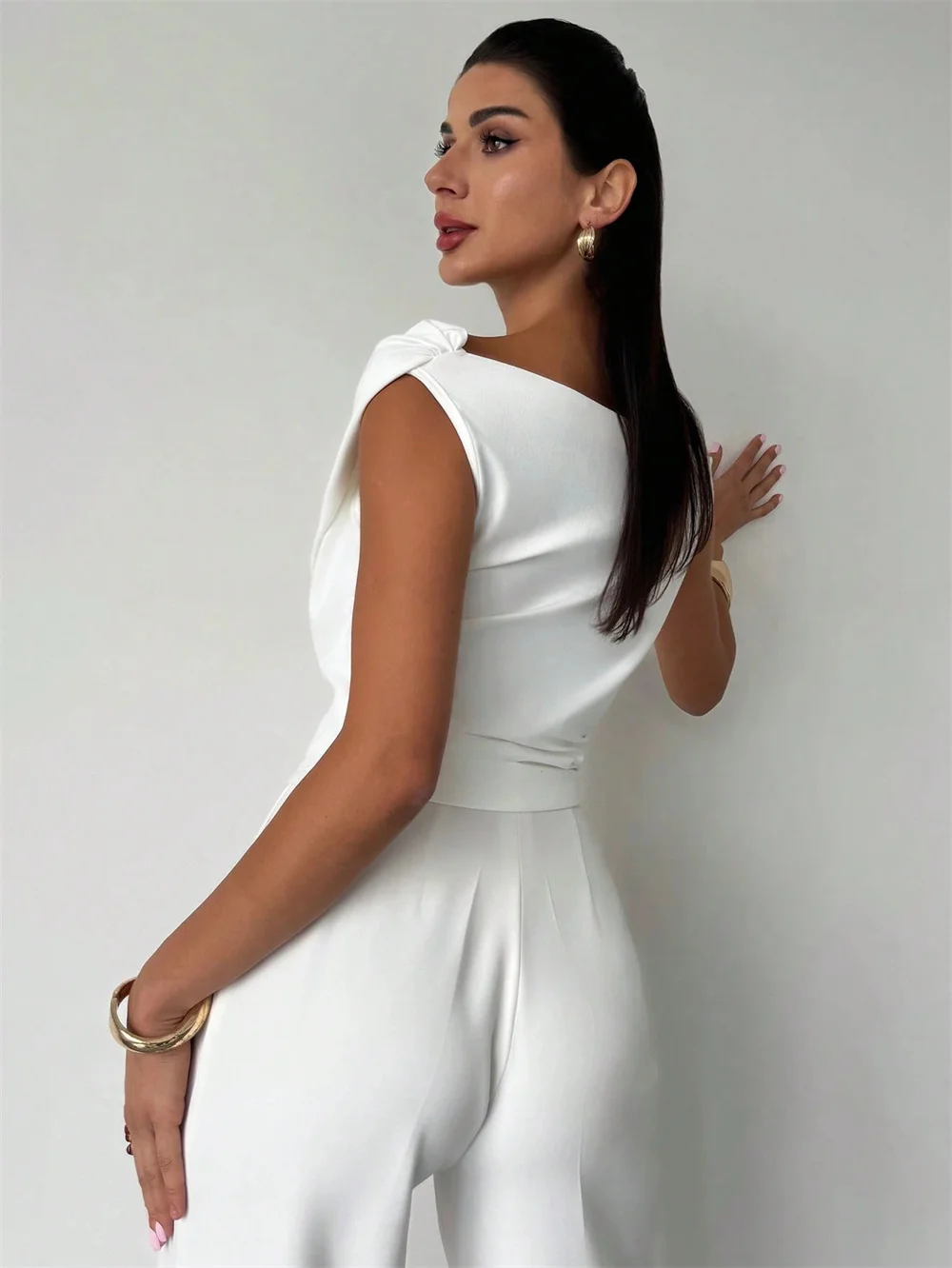 Sexy Elegant New Fashion 2024 Summer Casual Female Clothing Outfits Solid Color Short Sleeved High Waisted Workwear Jumpsuit