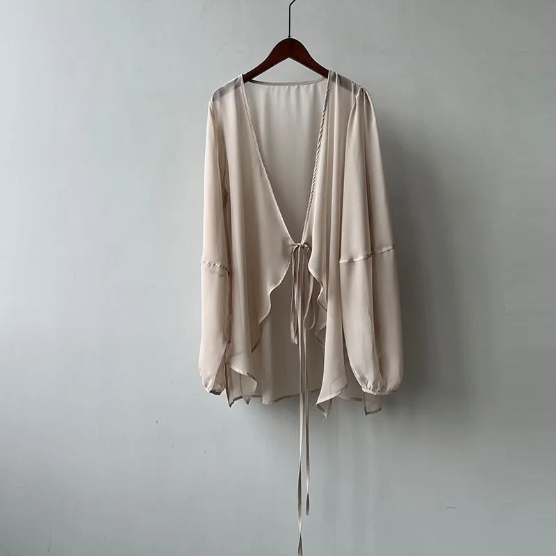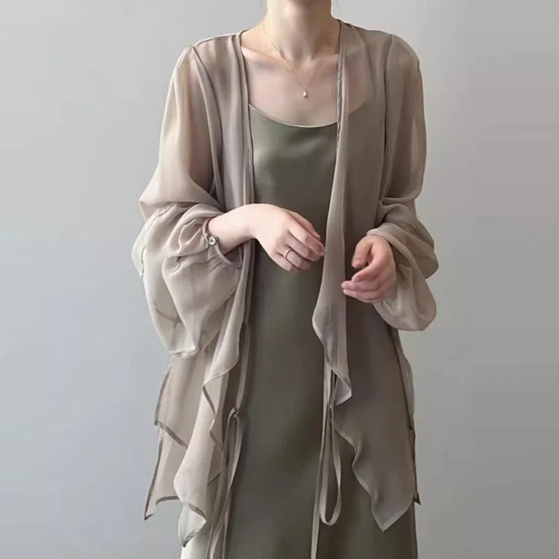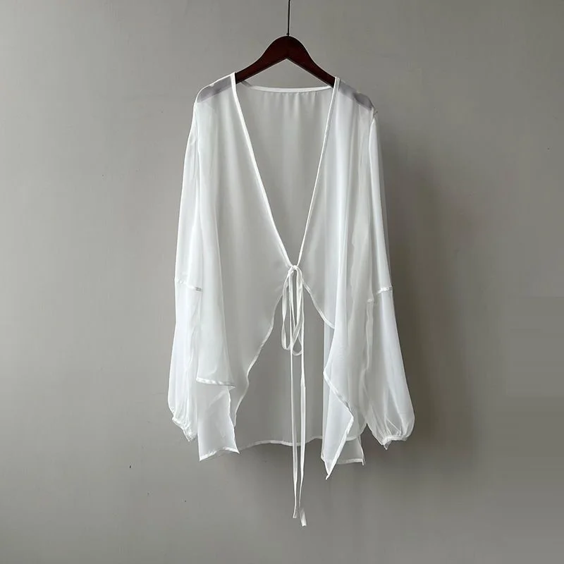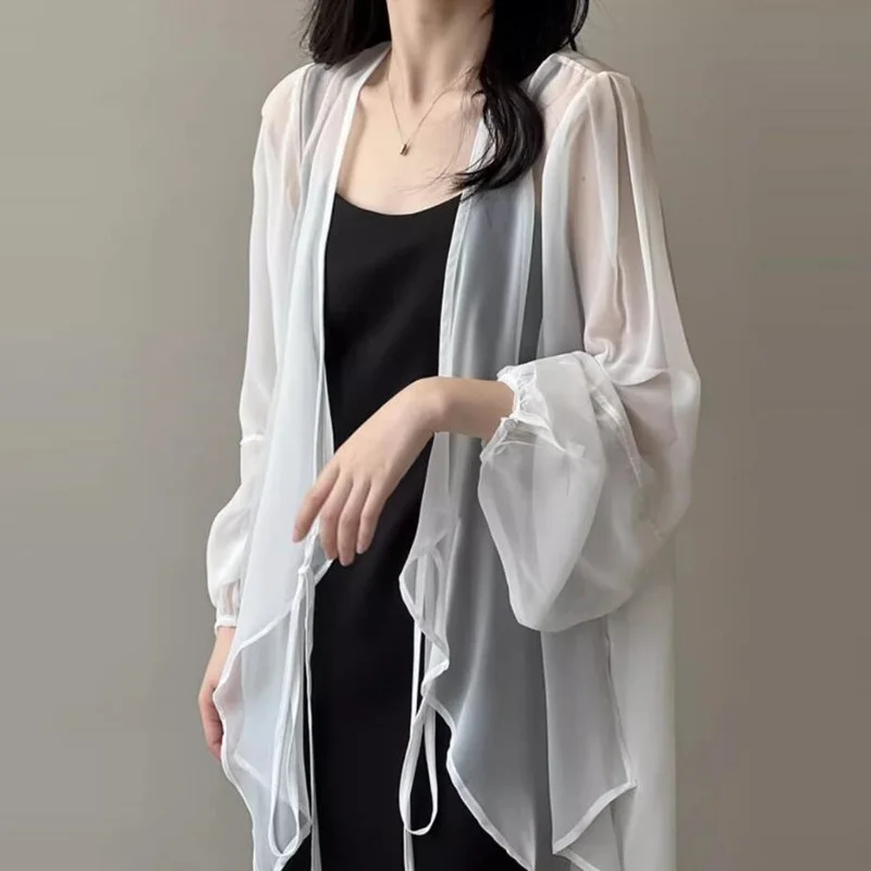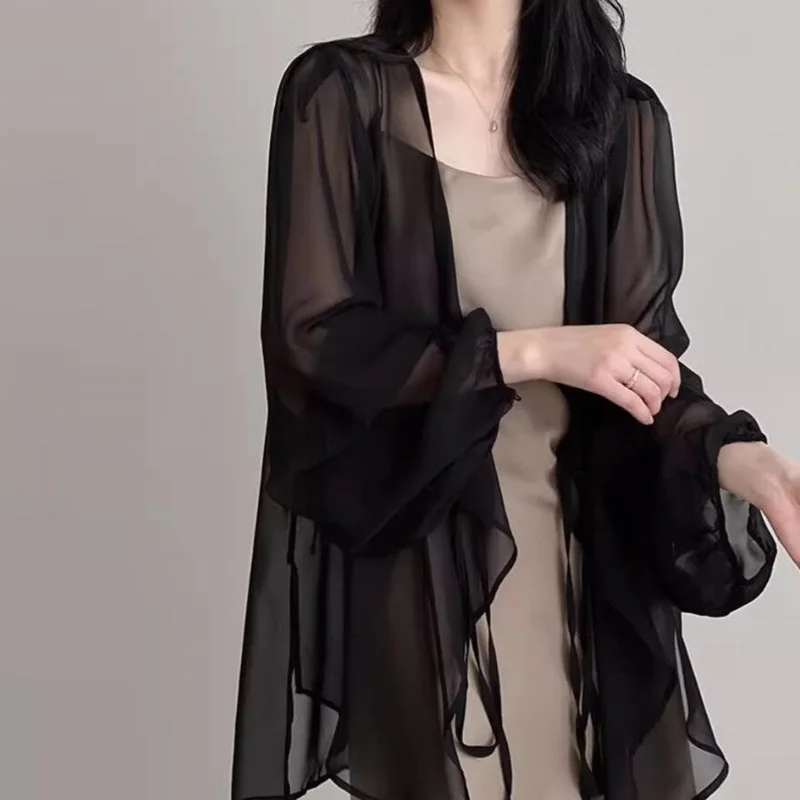 Summer Sun Protection Shirt Korean Women Chiffon Cardigan Blouse Solid Color Ladies Shawl Female Oversize Casual Loose Coats