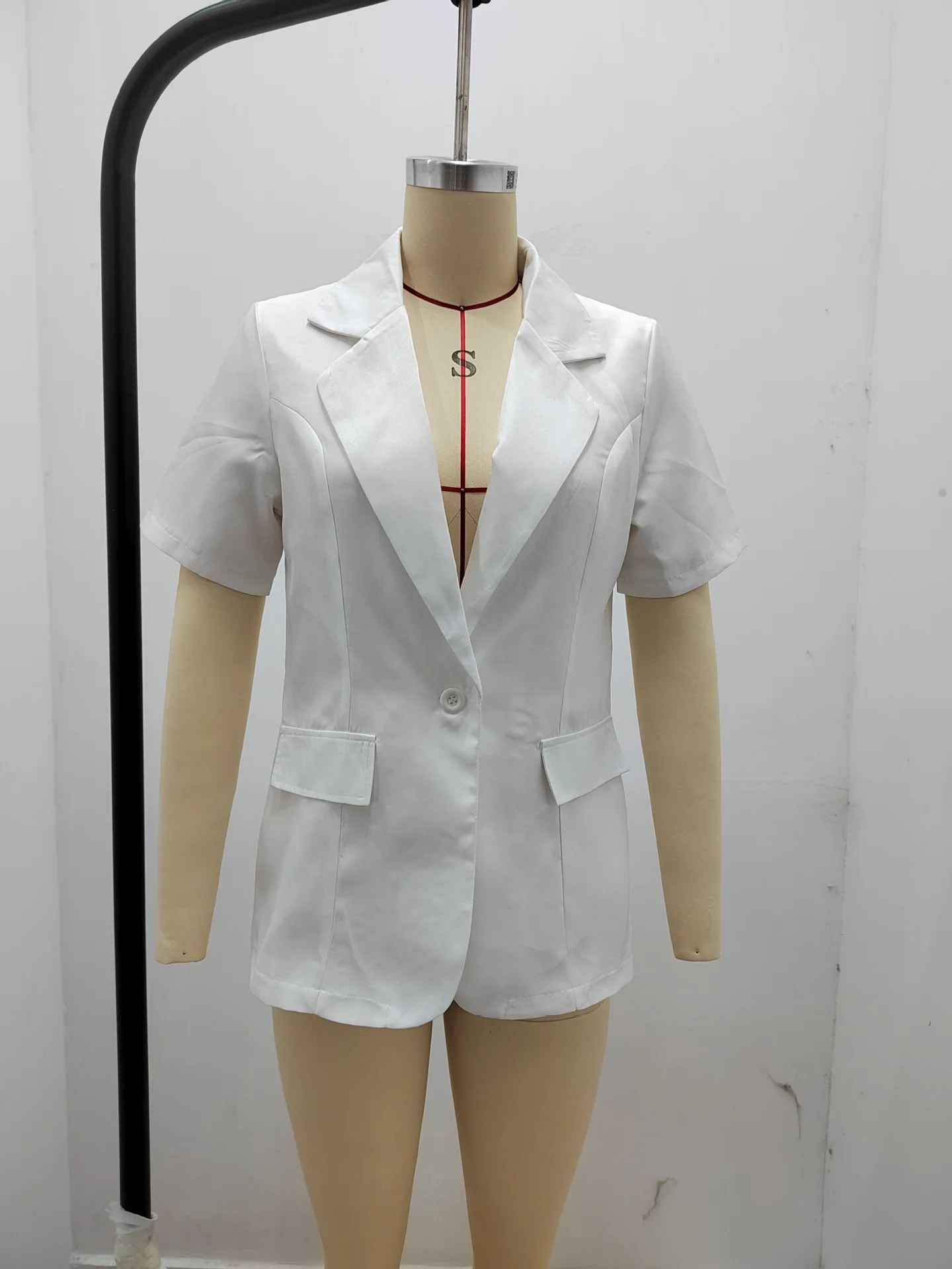 Summer women's temperament, fashionable and loose fitting small suit, European and American solid color suit collar, short sleev