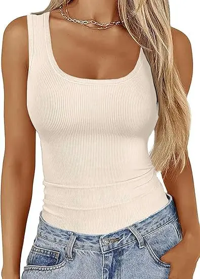 Summer Women's Vest Slim Fit Elastic Fashion Thread Basic Pullover Simple Versatile Square Collar Sleeveless T-shirt