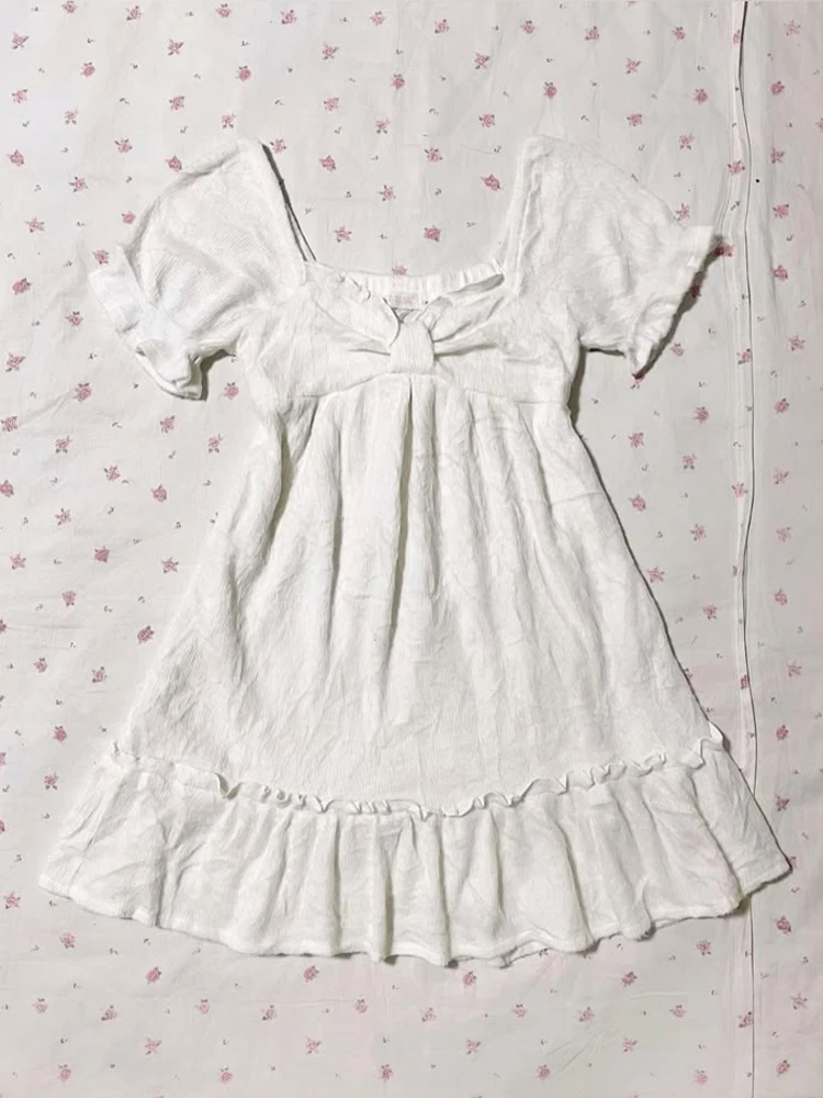 Sweet and versatile women's dress Y2K solid color square collar fairy tale kawaii commuting versatile ladylike punk women's tops