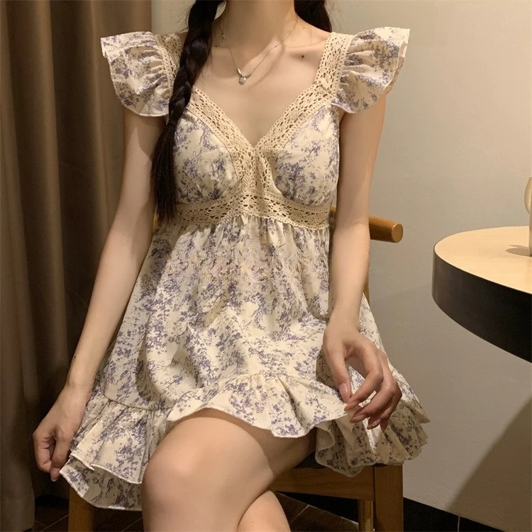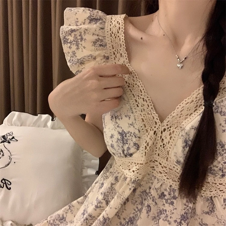 This lace nightgown set features a sweet princess-style design, perfect for adding a touch of elegance to your bedtime routine.