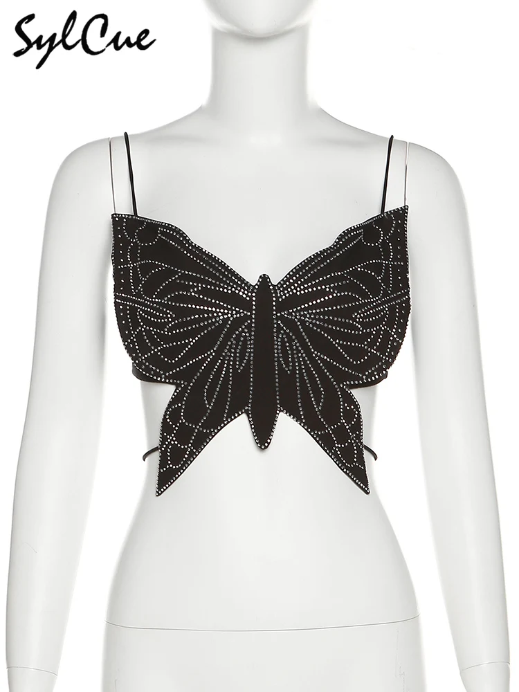 Sylcue Butterfly Plastic Art Design Advanced Fashion Personality All-Match Summer Travel Cool Women'S Sexy Charm Camisole Vest