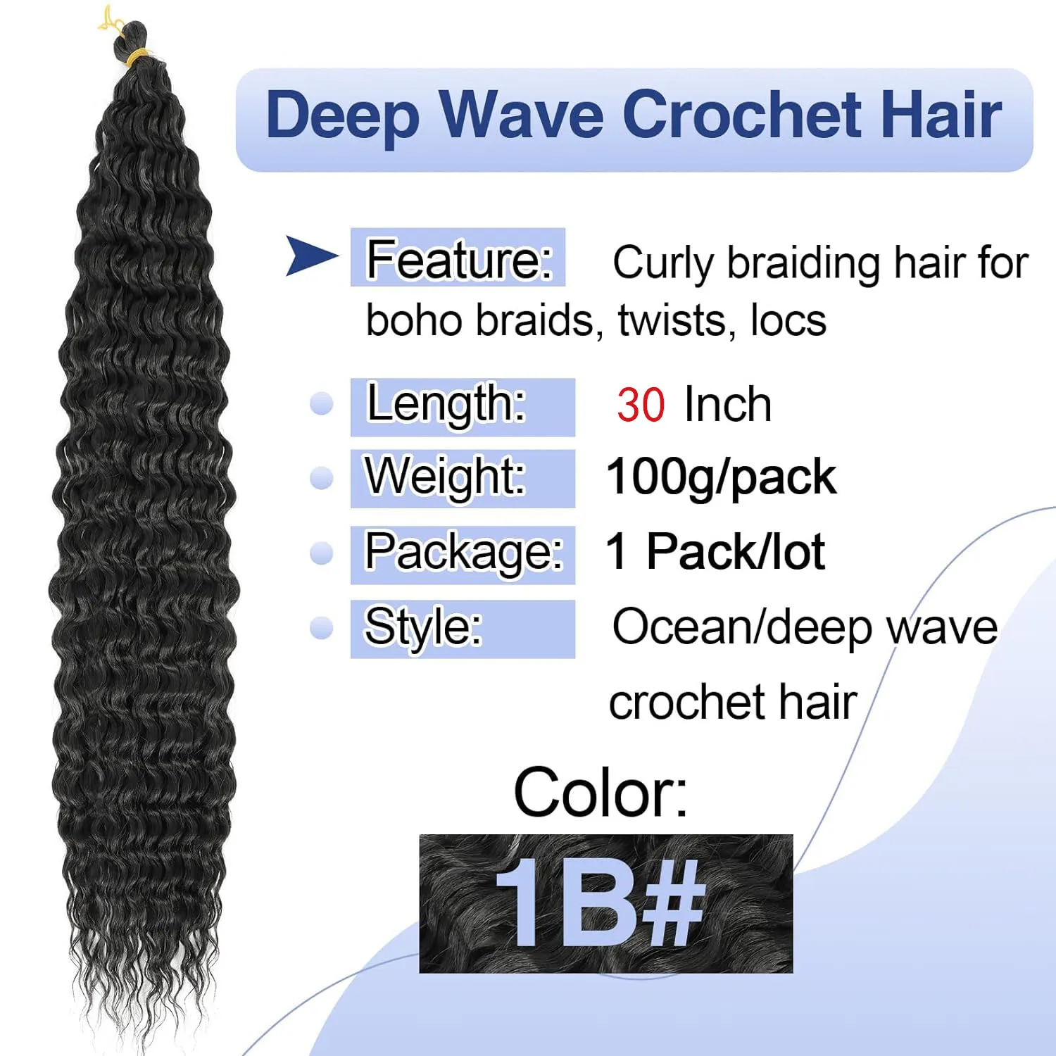 Synthetic Curly Braiding Hair 30 Inch Ocean Wave Crochet Hair for Black Women Long Deep Wave Wet and Wavy Braiding Hair