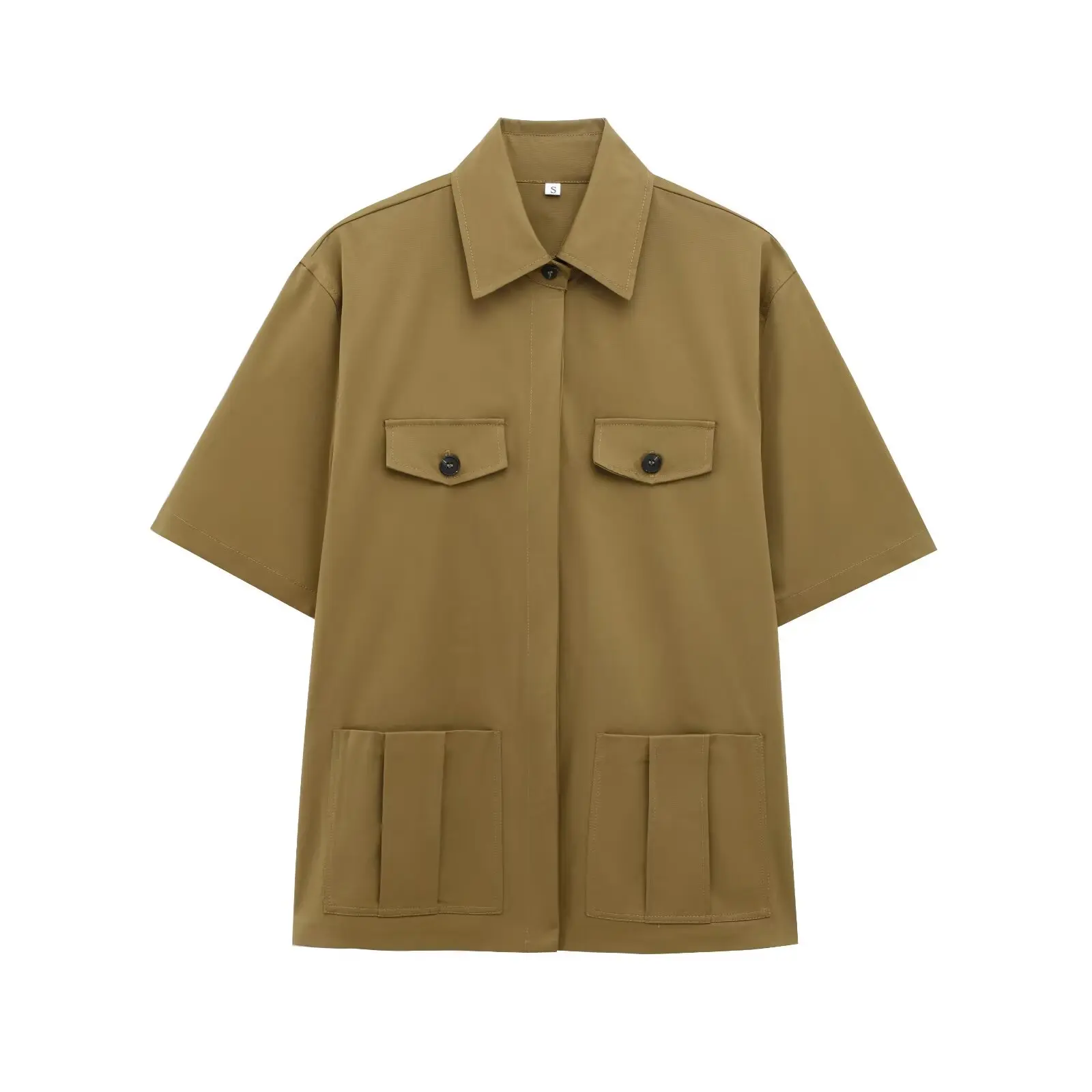 TFMLN Spring Summer New 2pcs Sets 2025 Women Solid Color Short Sleeve Shirts Pockets Tops Casual Shorts Sets