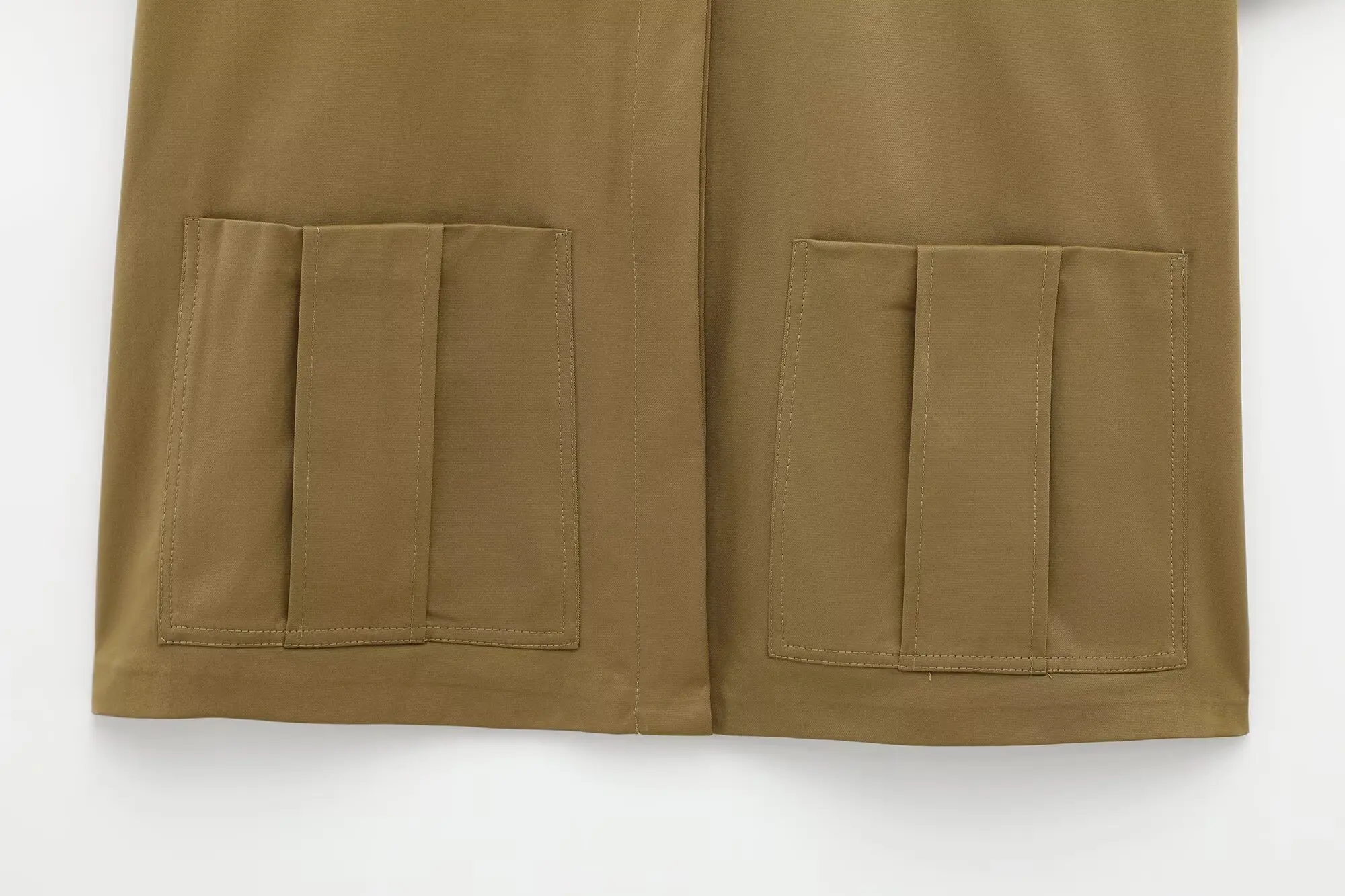 Two Piece Set Women Outfit 2023 Spring Fashion Drawstring Pocket Design U-Neck Sleeveless Skinny Jumpsuit & Long Sleeve Coat Set