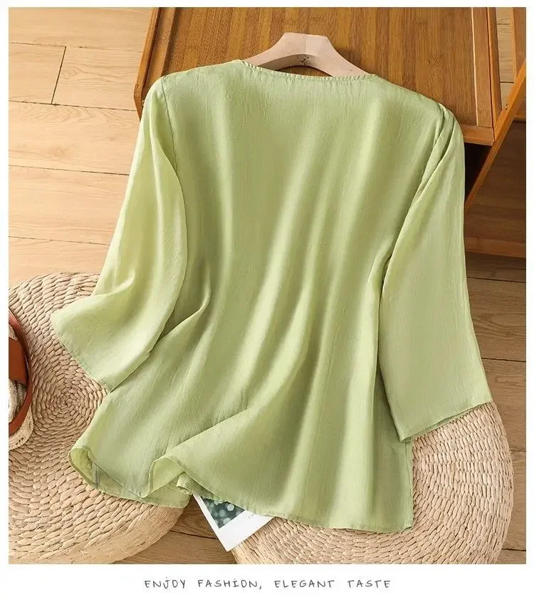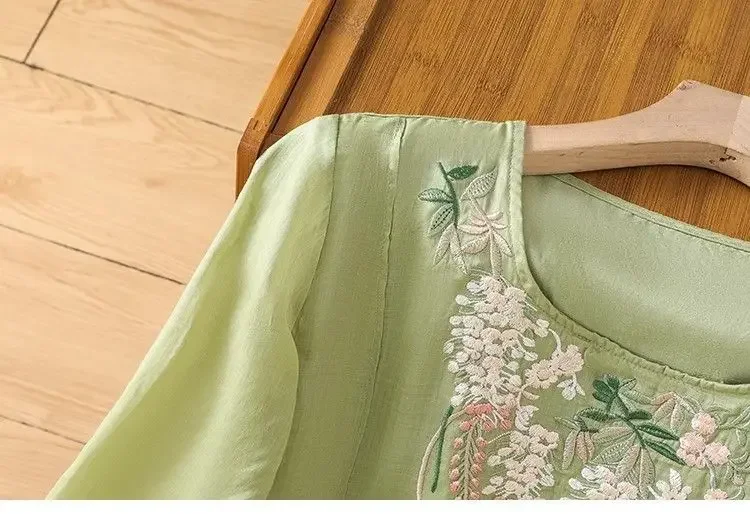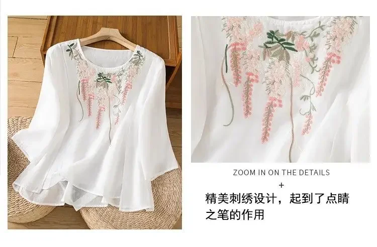 Thin Streetwear Vintage Clothes Ethnic Style Cotton Linen Shirts for Women Clothing Top Tshirt Tees Fashion Casual Embroidery
