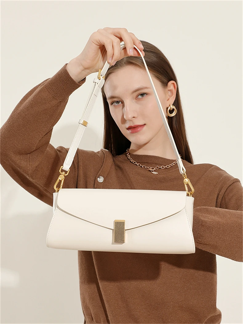 Toptrends Genuine Leather Underarm Shoulder Bags For Women 2025 Luxury Designer Crossbody Purses Envelope Flap Ladies Handbags