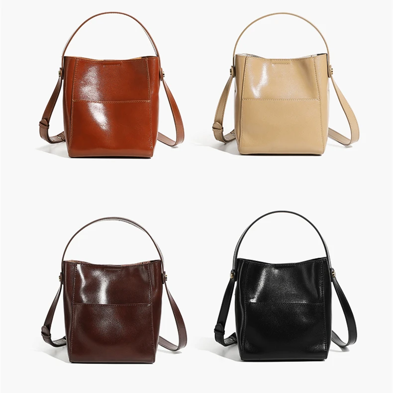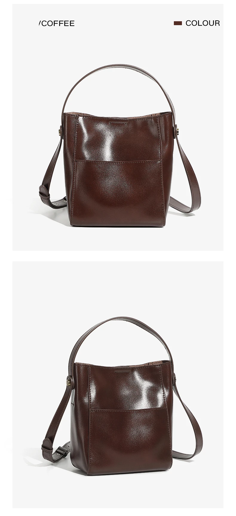 Toptrends Korean Style Bucket Genuine Leather Shoulder Bags For Women 2025 Luxury Designer Crossbody Purses Tote Ladies Handbags