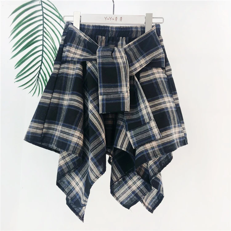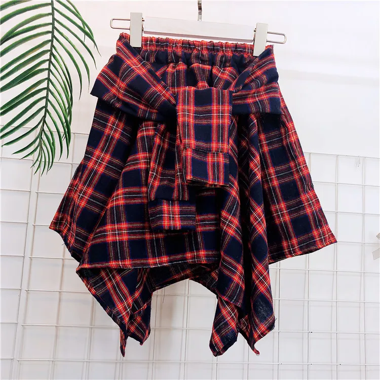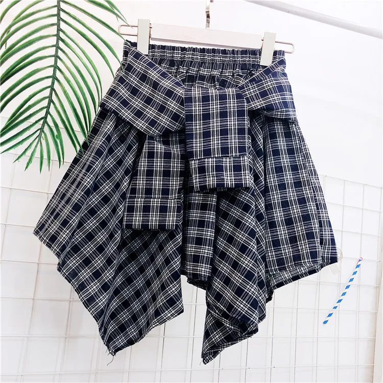 TOTRUST Fashion College Asymmetrical Skirt Women Summer Plaid Skirt Women Casual Students Fake Shirt Mini Skirt Female Saia
