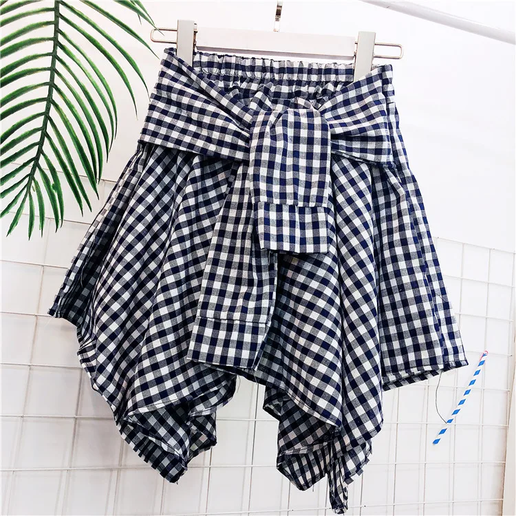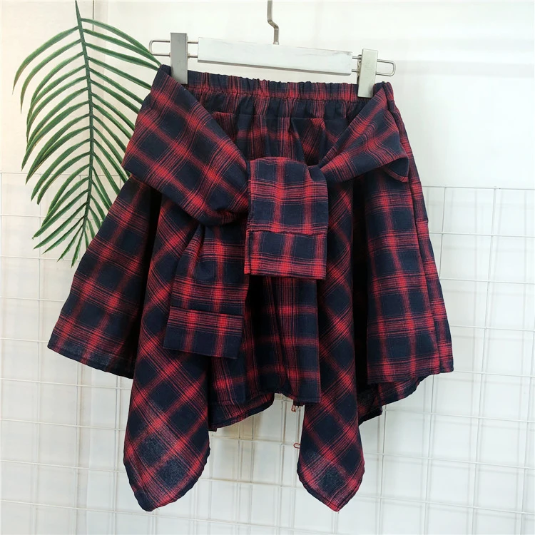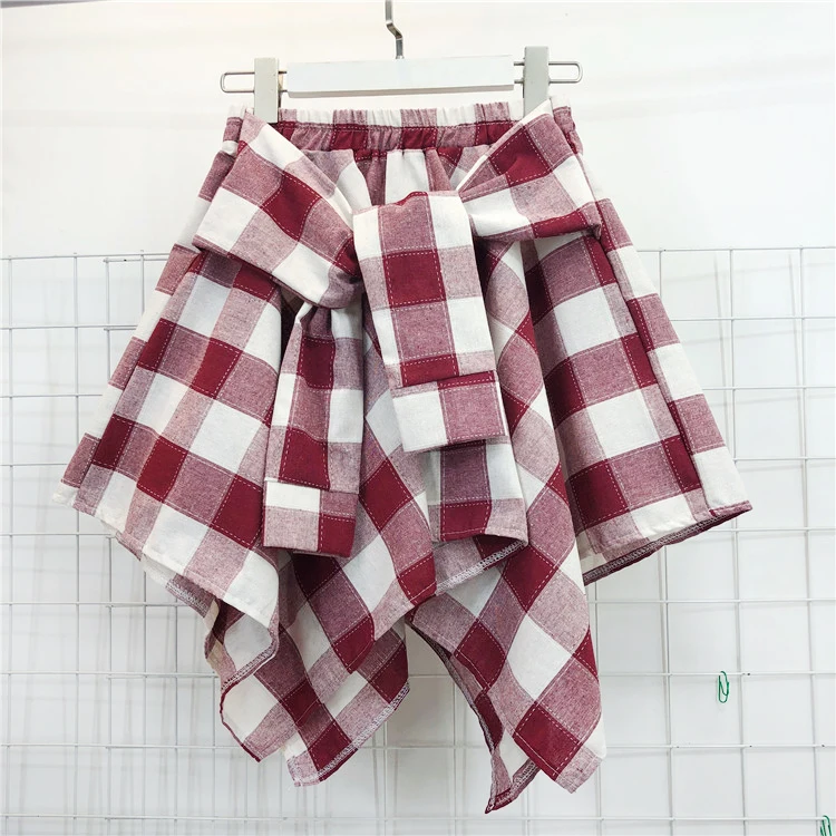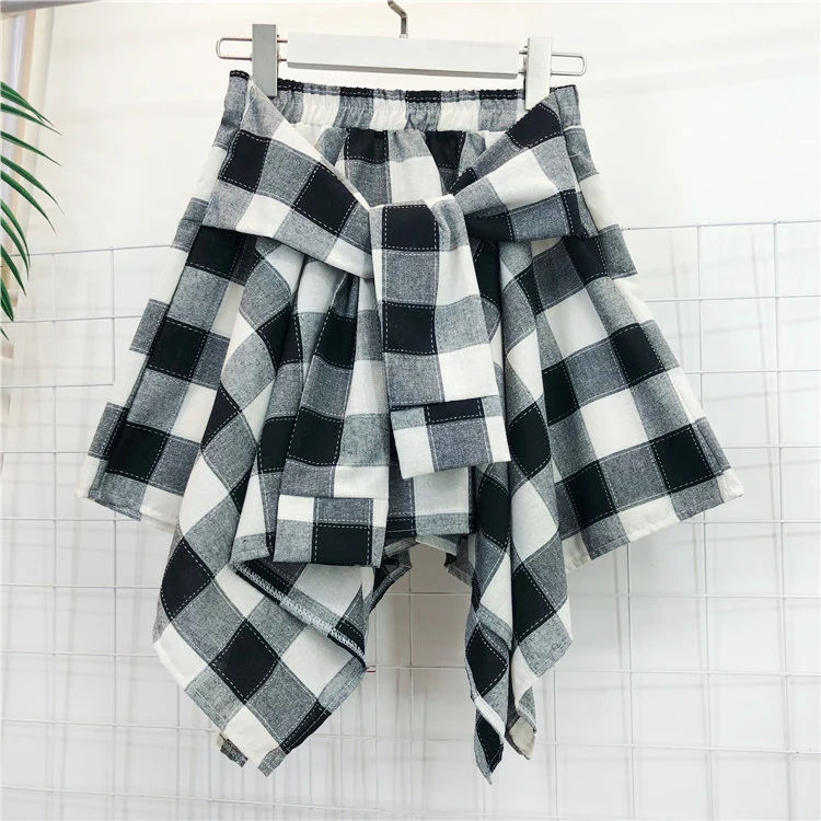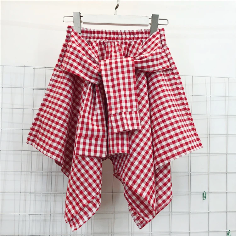 Product Name: TOTRUST Plaid Skirt Women Summer Printed Irregular Skirts For Women Casual Students Fake Shirt Mini Skirt Female Beach Saia