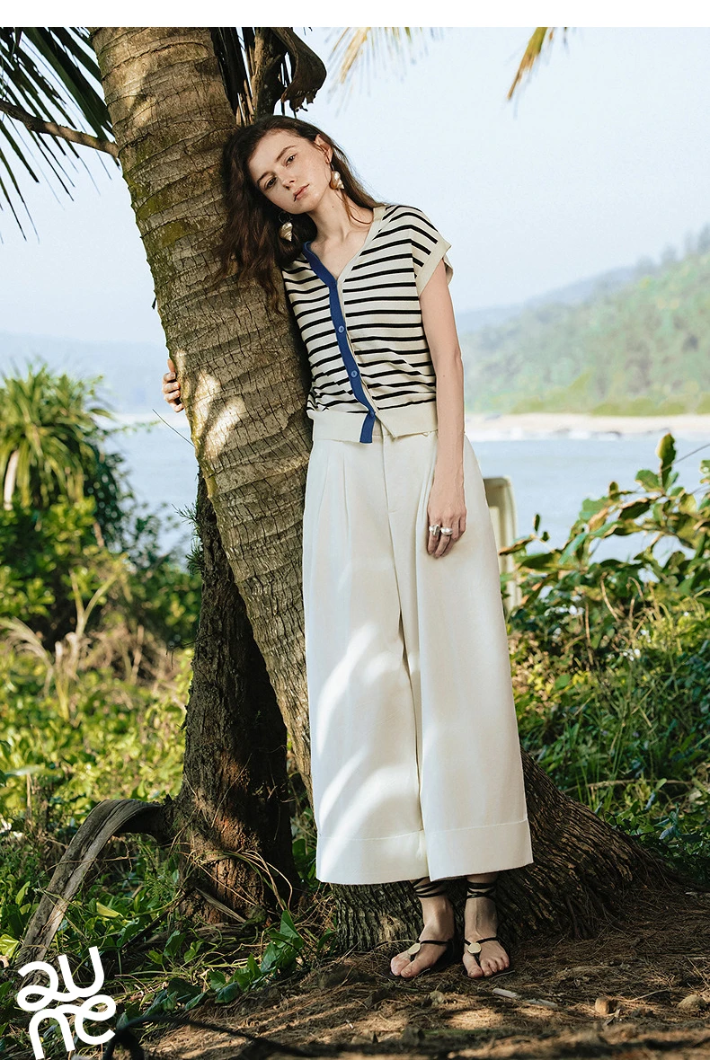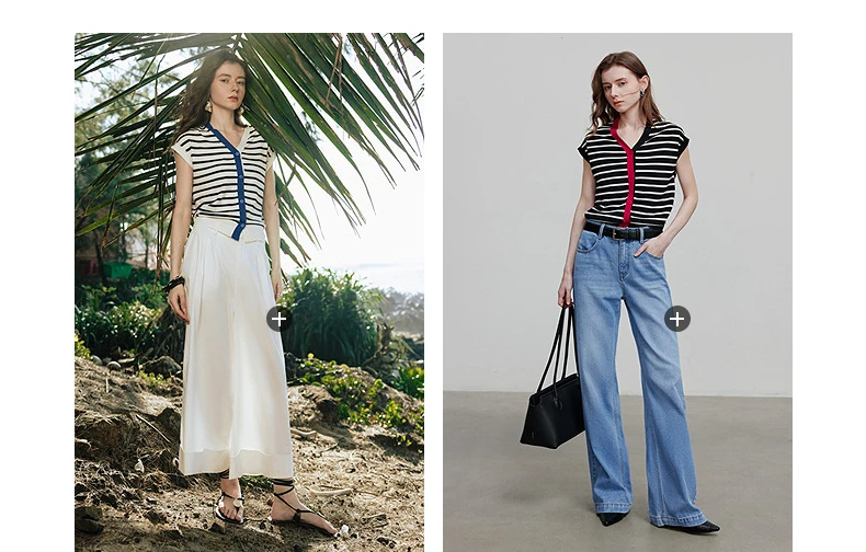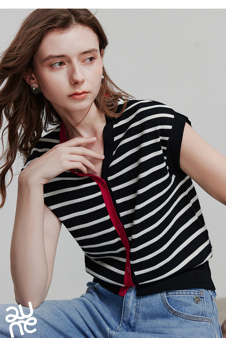 TOYOUTH Women Knitwear 2025 Summer New Short Sleeve Striped Contrast Color Pullover Tops 8523018