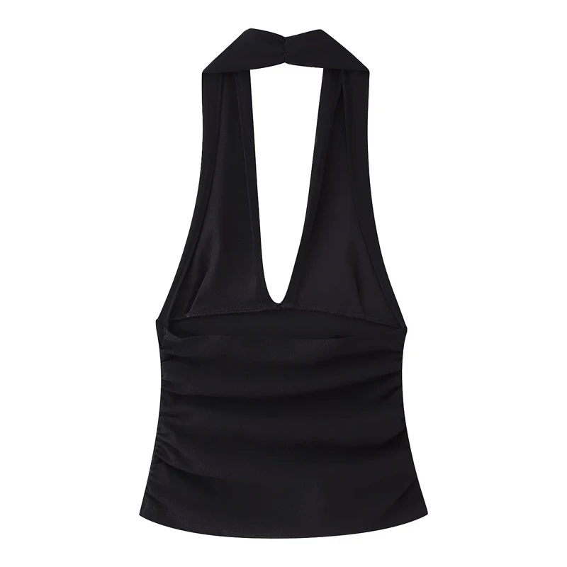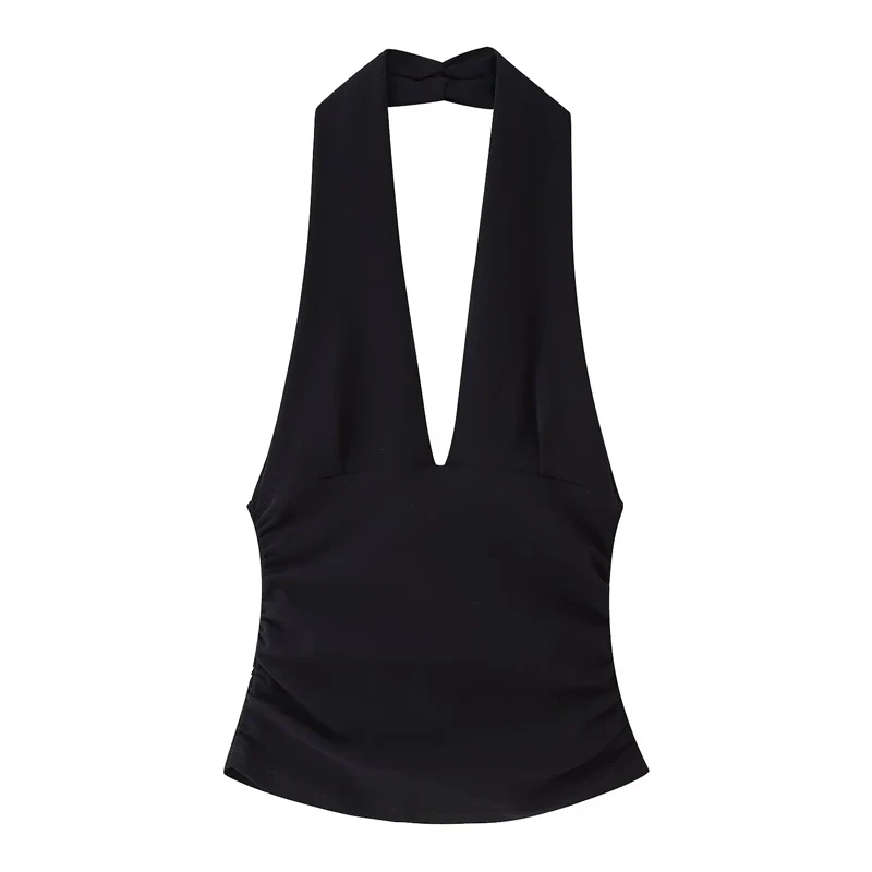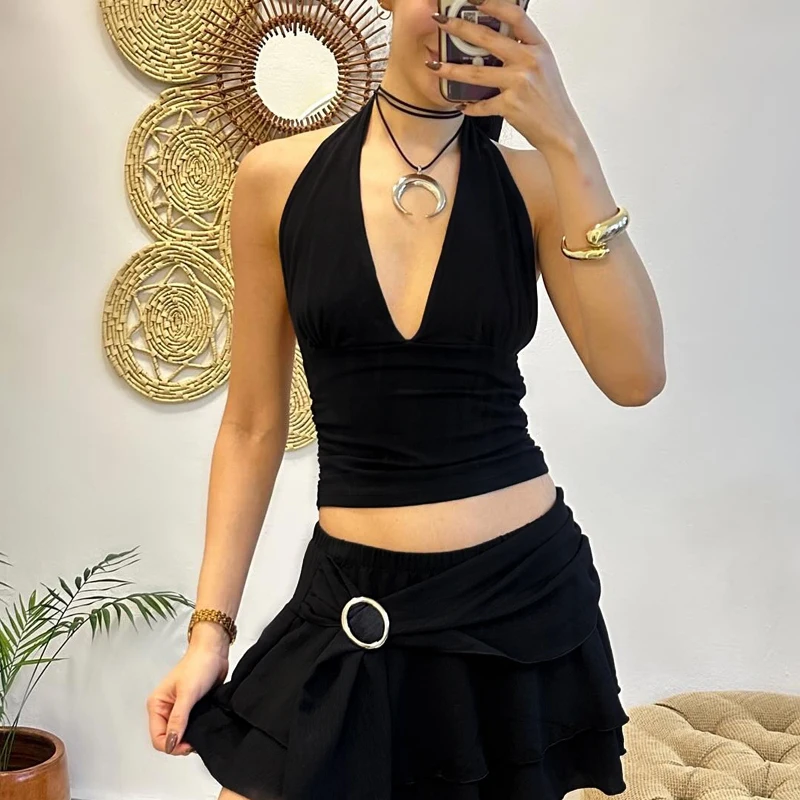 TRAF Halter Top Women Off Shoulder Deep V-Neck Crop Top y2k Sexy Backless Tank Top Street Style Casual Women's Summer Tops 2025