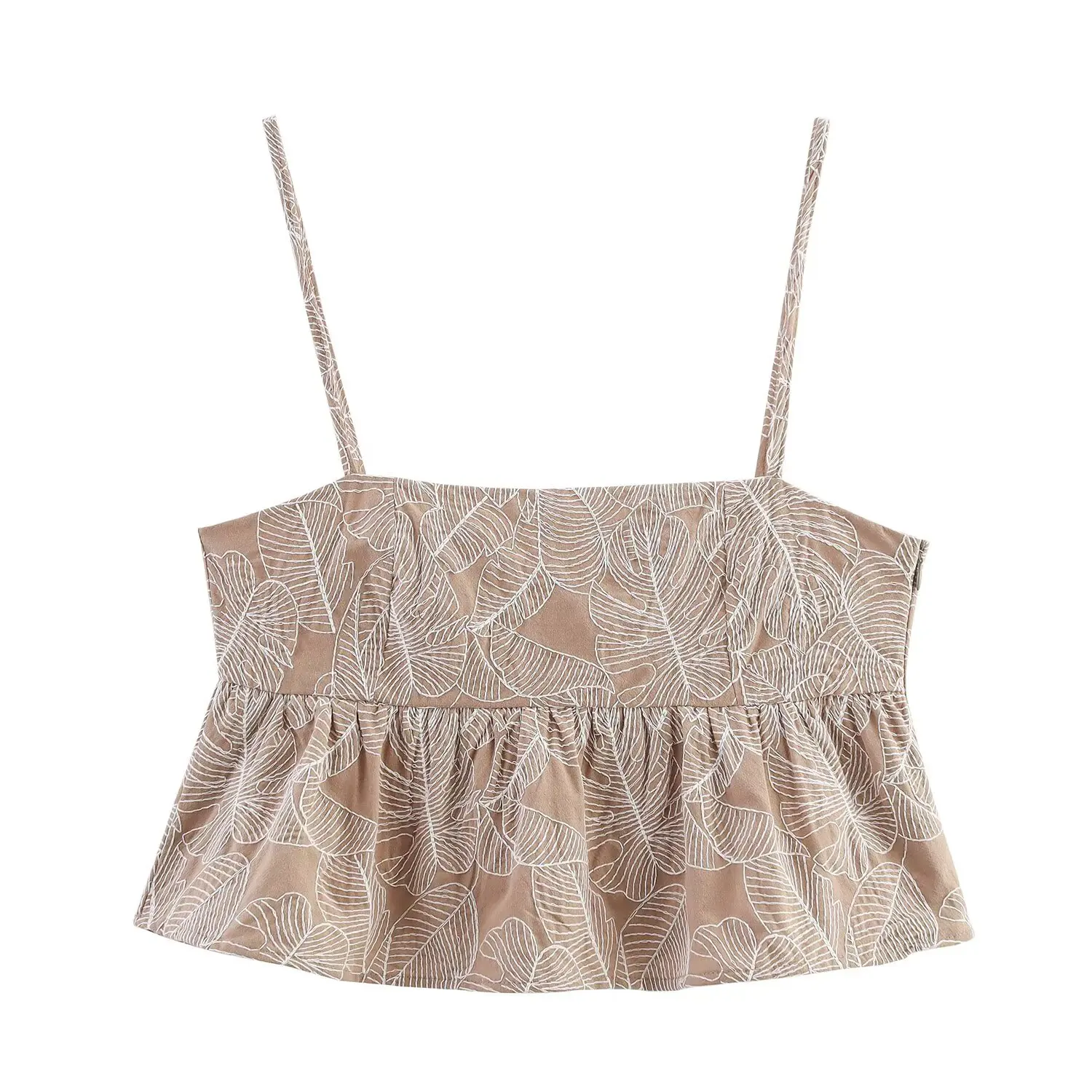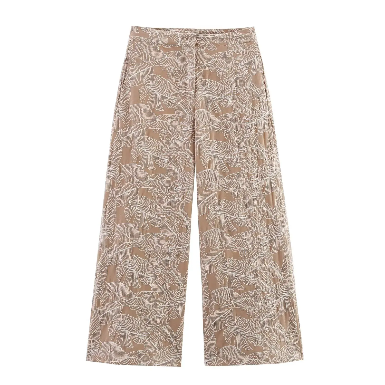 TRAF Women Two Pieces Pants Sets 2025 New Fashion Embroidery Crop Top + Trousers Women's Suit Casual 2 Piece Set Woman Outfits