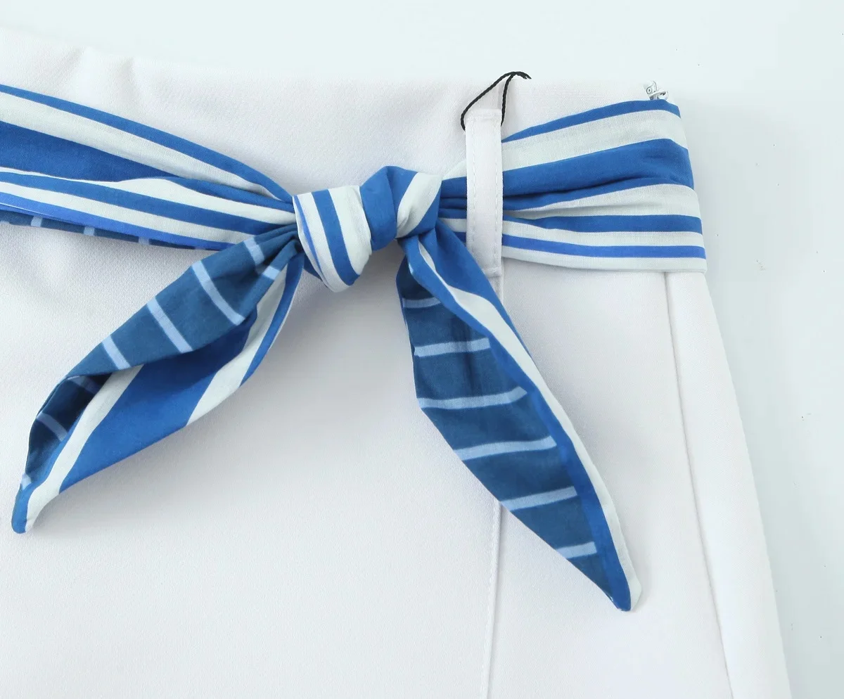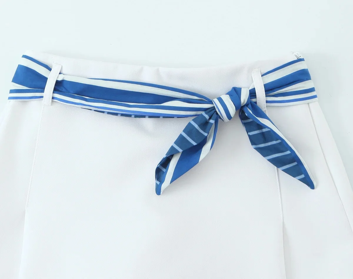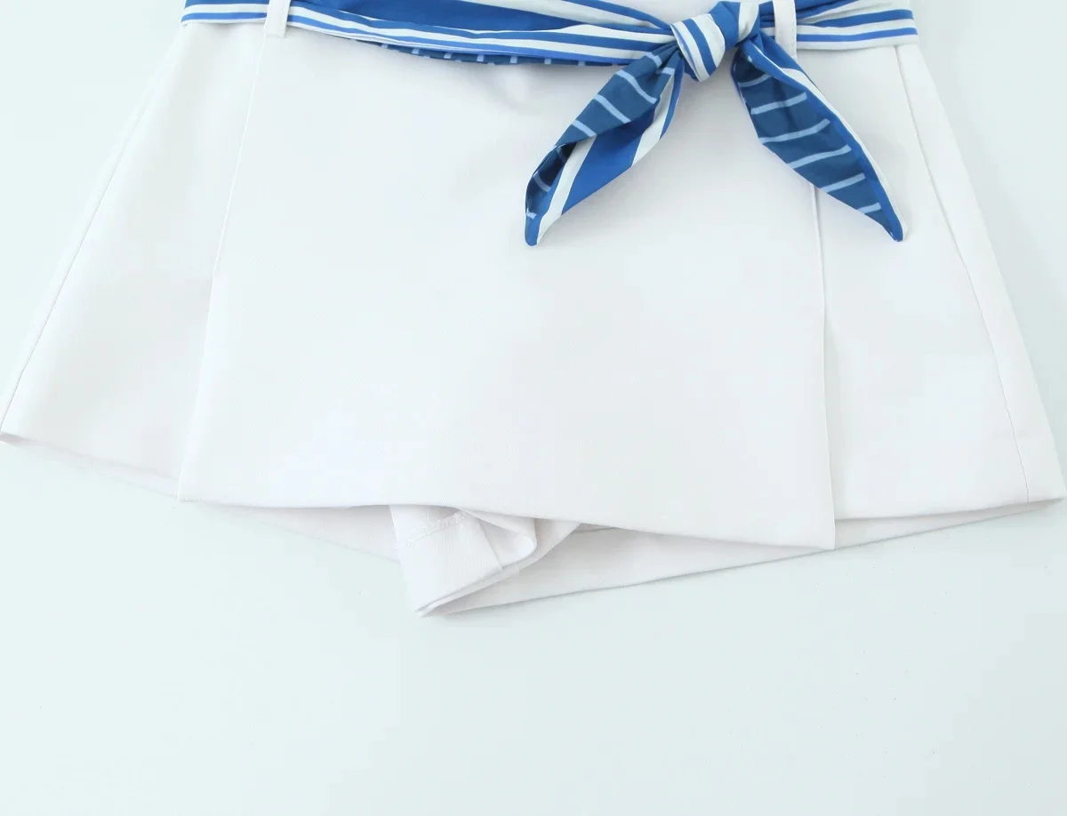 TRAFZA Sweet High Street Slim Lady Set Contrasting Colors Tops Or Belt Shorts 2025 Summer Fall Fashion Holiday Cute Shorts Set