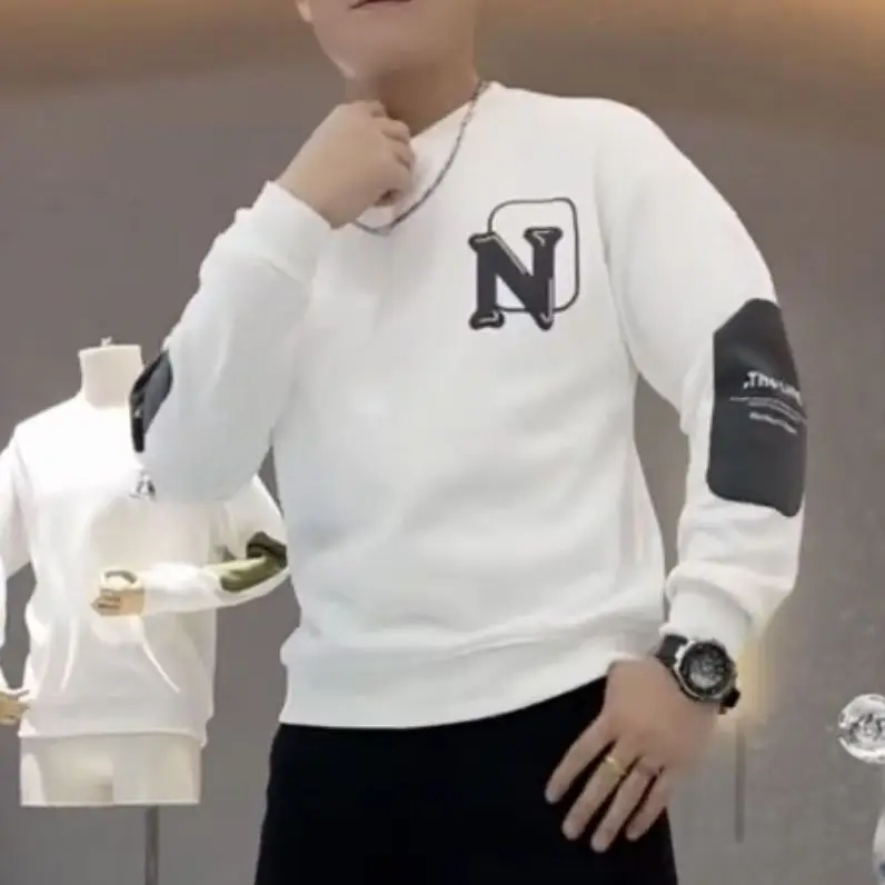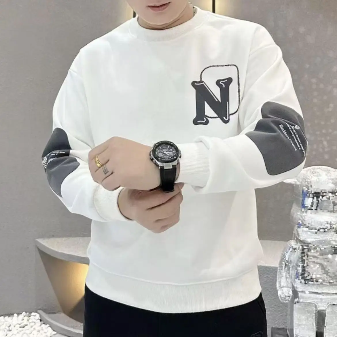 Trend Contrast Patchwork Print Letter Hoodies Sweatshirts Spring Autumn Long Sleeve Loose Casual Tops Fashion Lazy Men Clothing